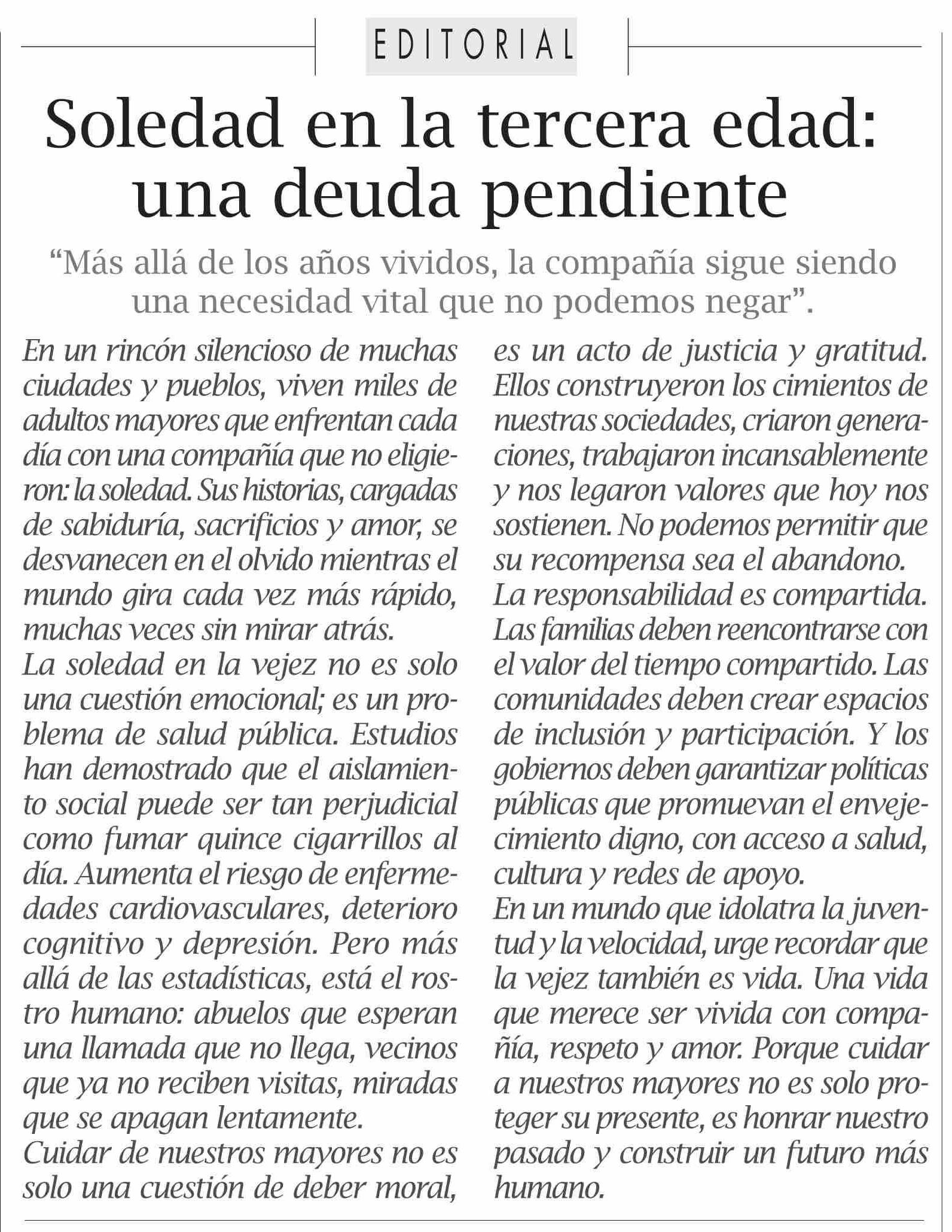 Título: Editorial: Soledad en la tercera edad: una deuda pendiente