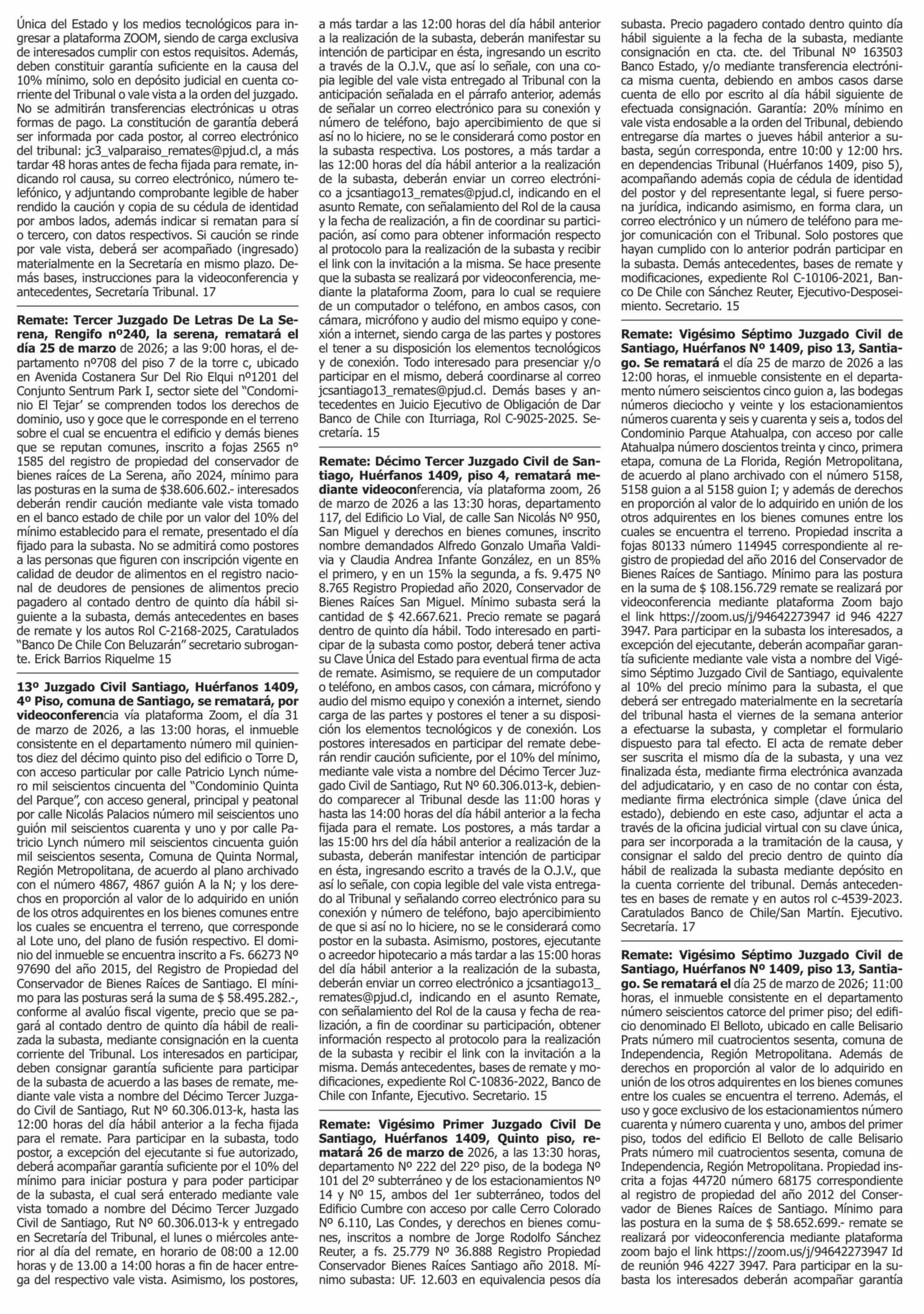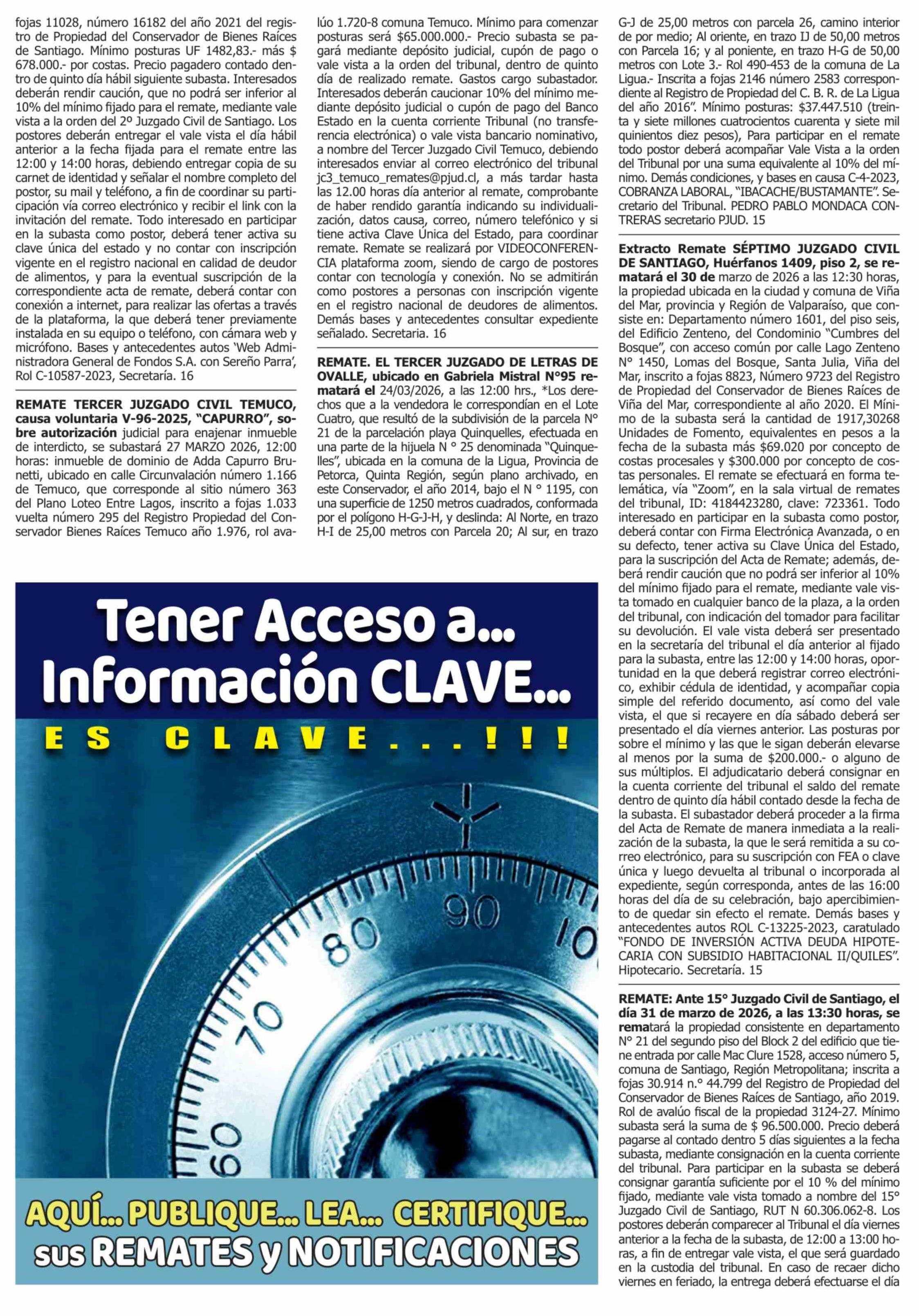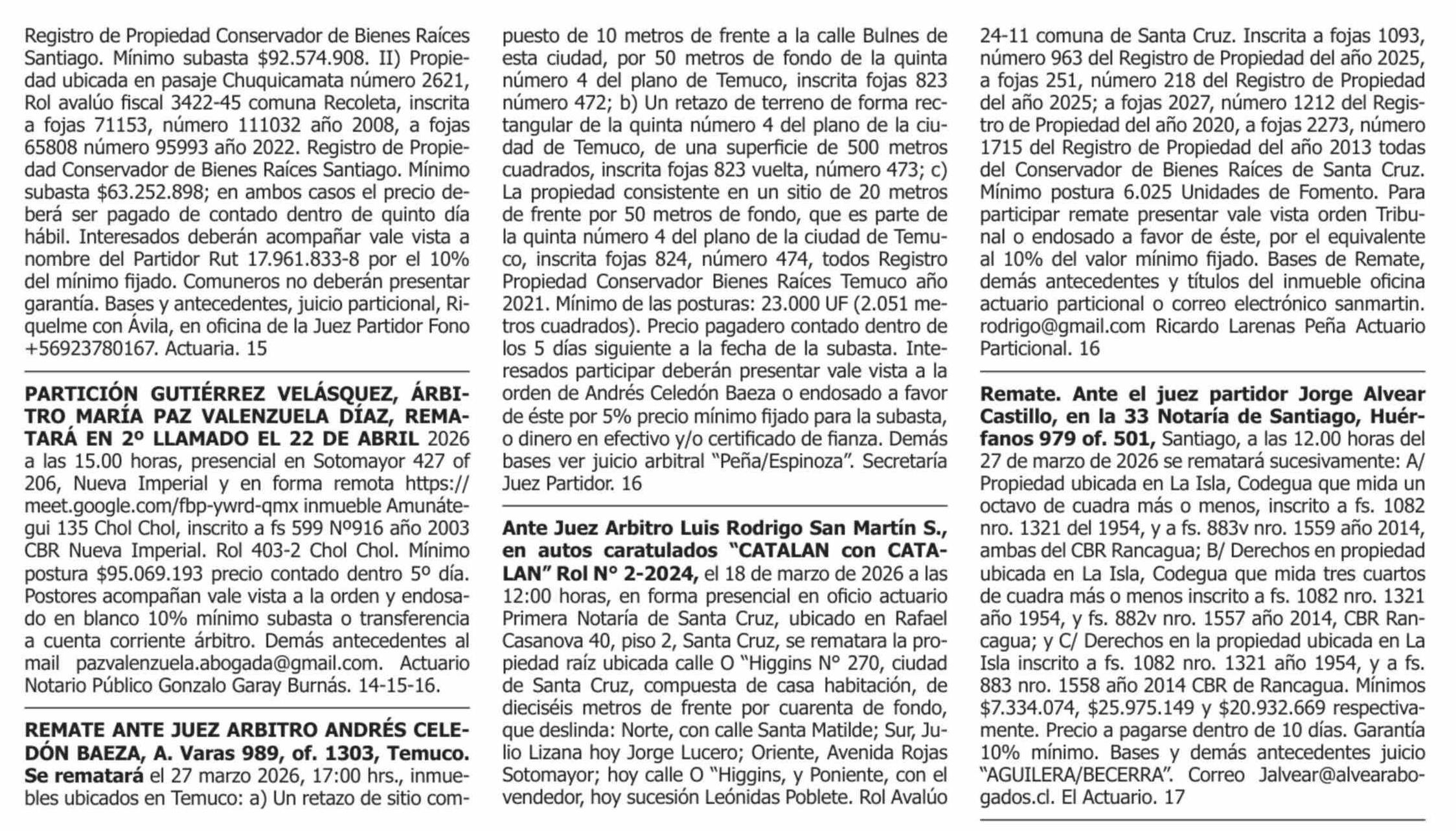 Fecha: 15-03-2026 Sector: Remates Región: Región Metropolitana de Santiago