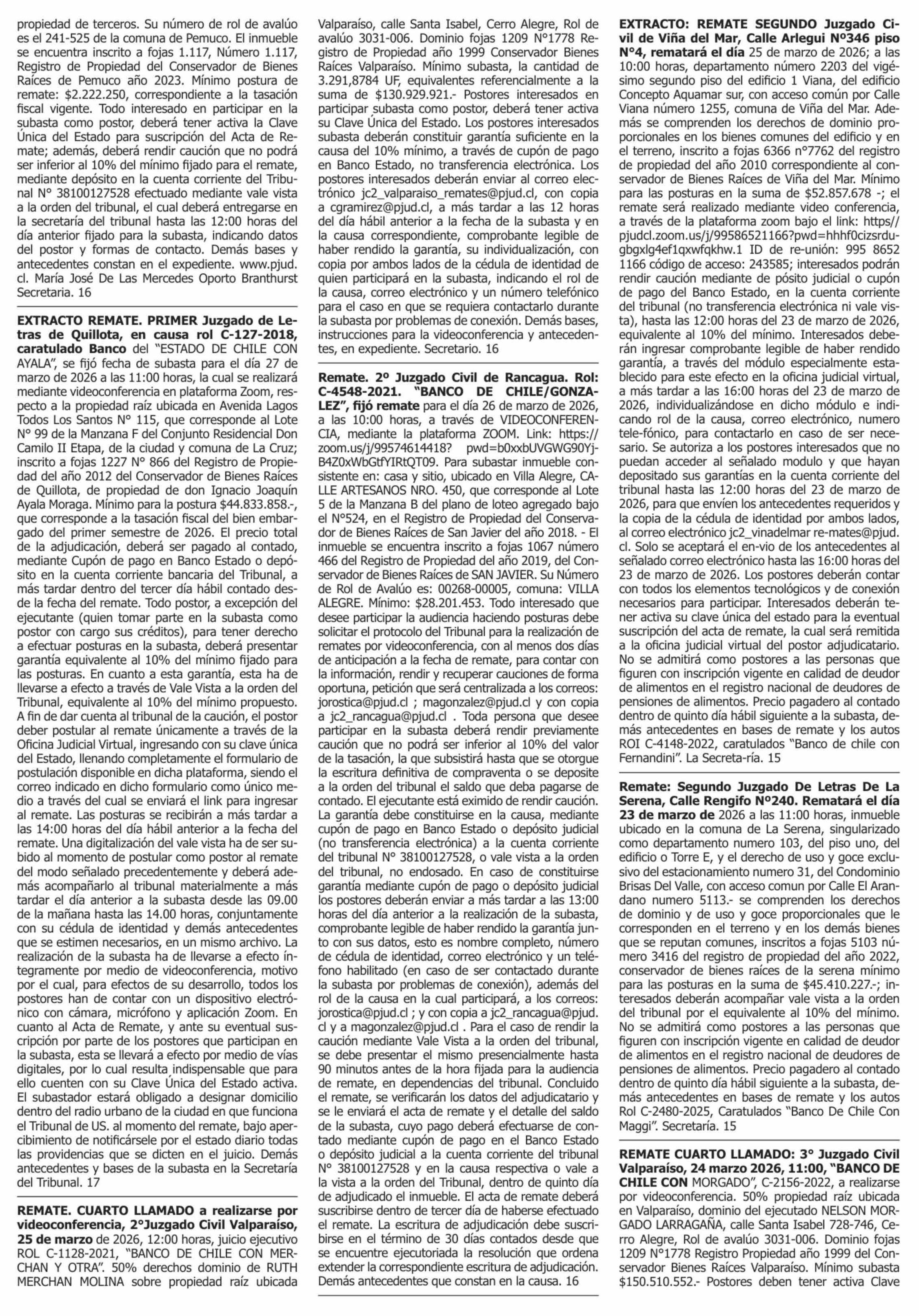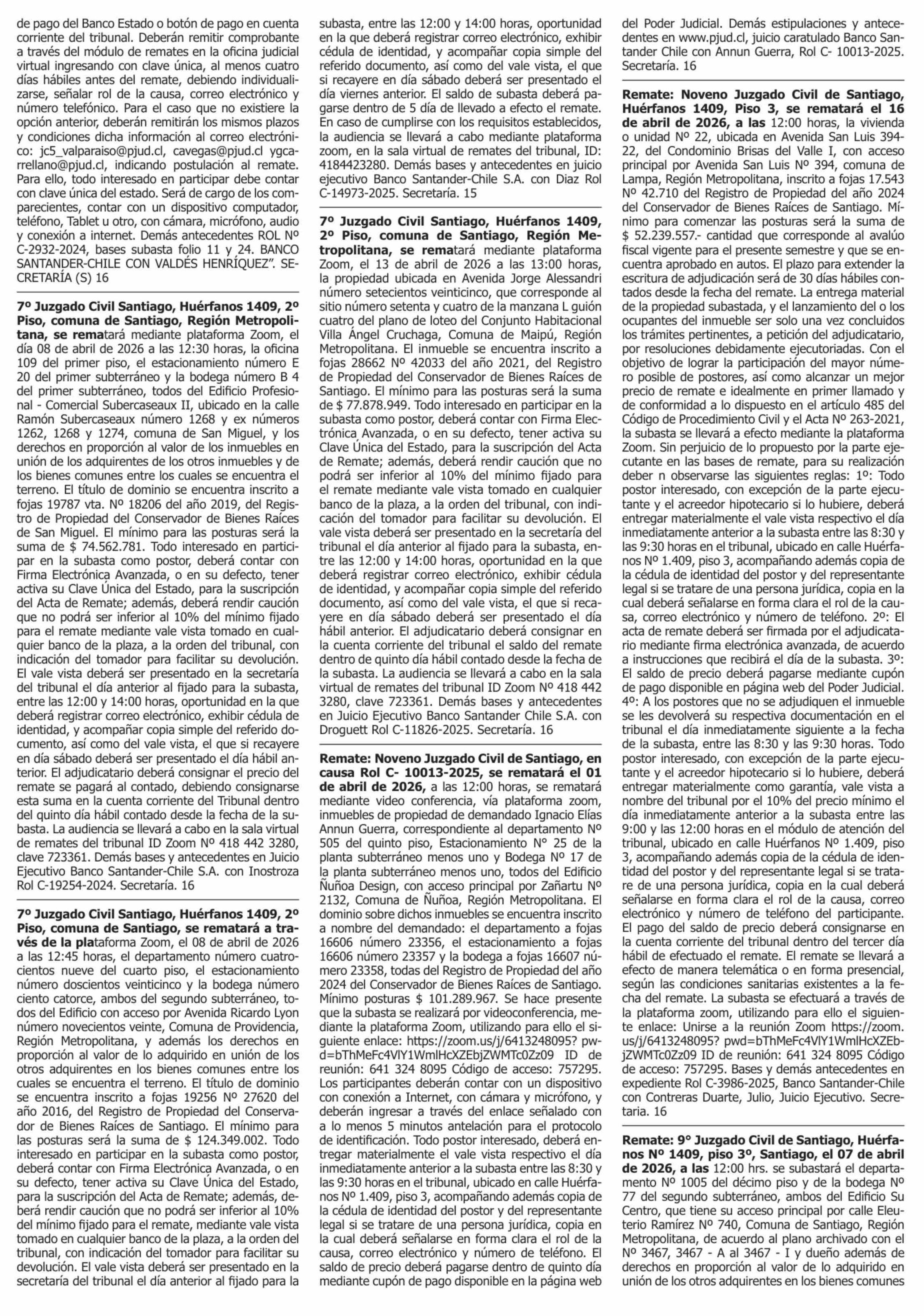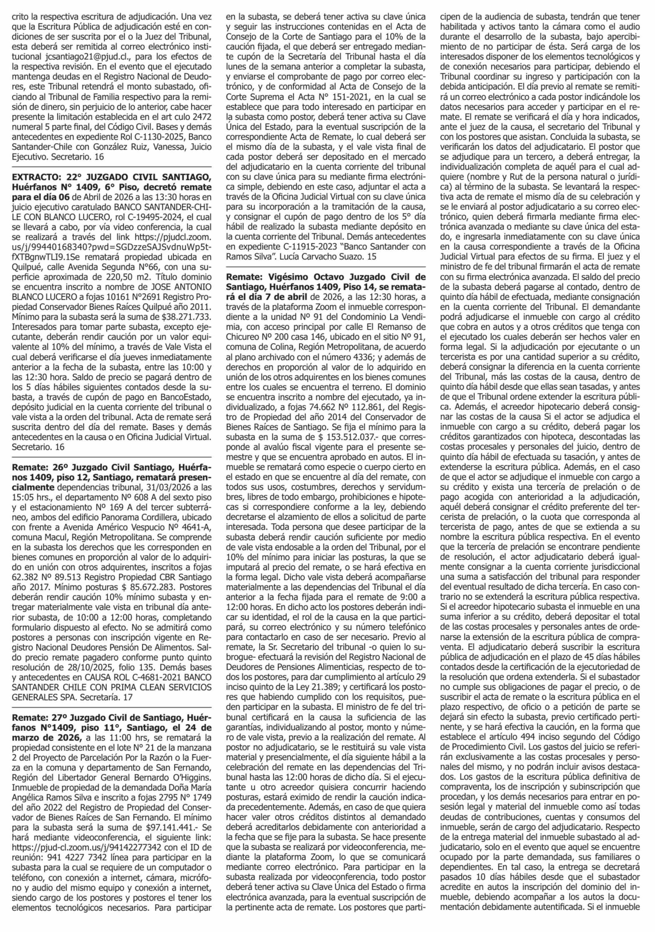 Fecha: 15-03-2026 Sector: Remates Región: Región Metropolitana de Santiago