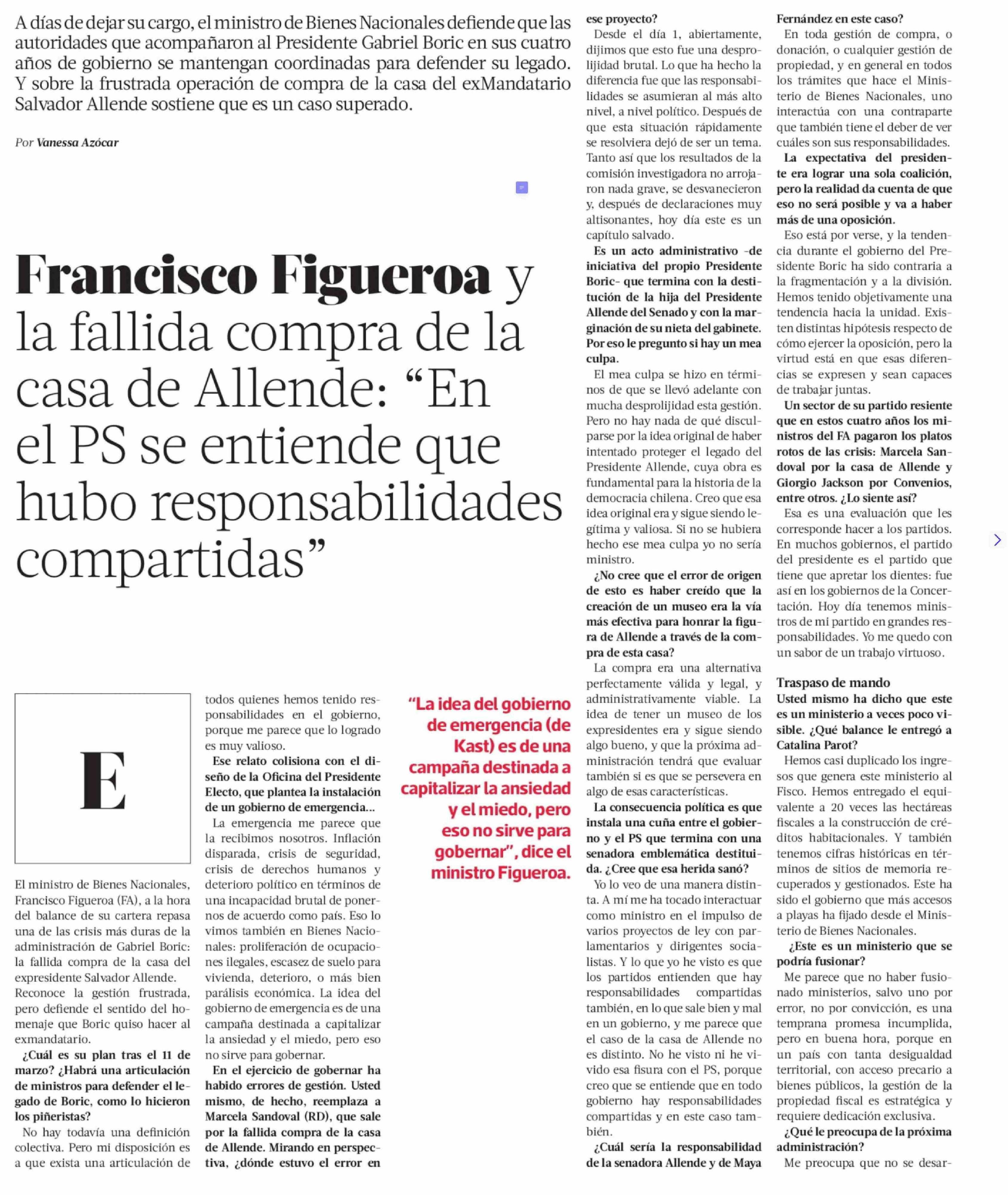 Título: Francisco Figueroa y la fallida compra de la casa de Allende: "En el PS se entiende que hubo responsabilidades compartidas"