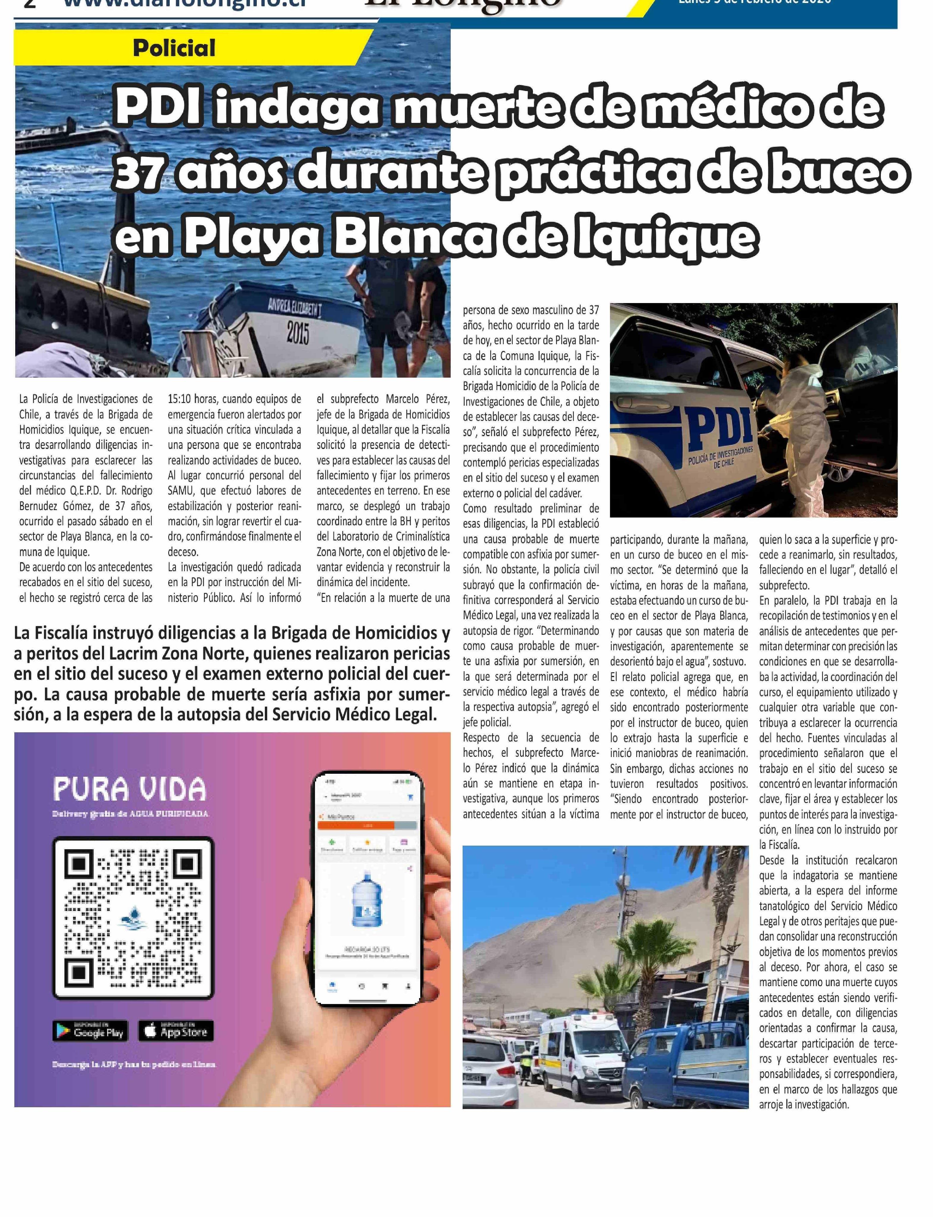 PDI indaga muerte de médico de 37 Años durante práctica de buceo en Playa Blanca de Iquique 09-02-2026 El Longino |