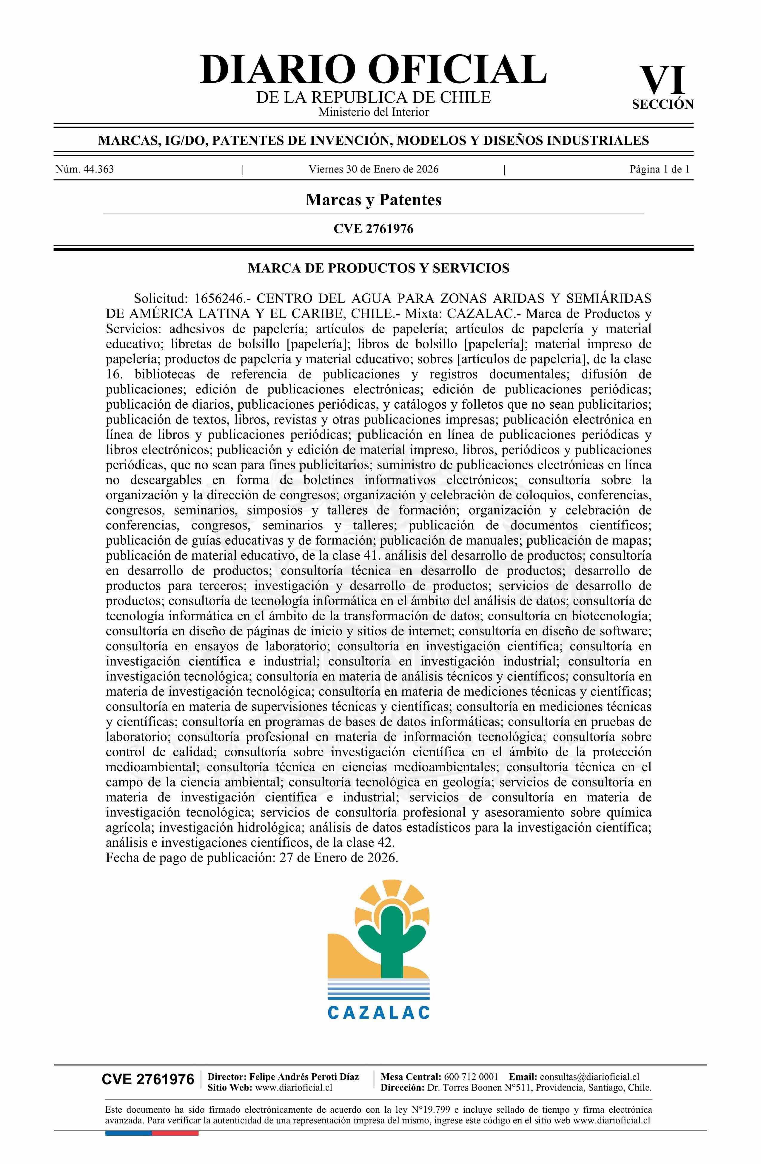 Solicitud número 1656246.- CAZALAC 30-01-2026 Diario Oficial Edición Electrónica |