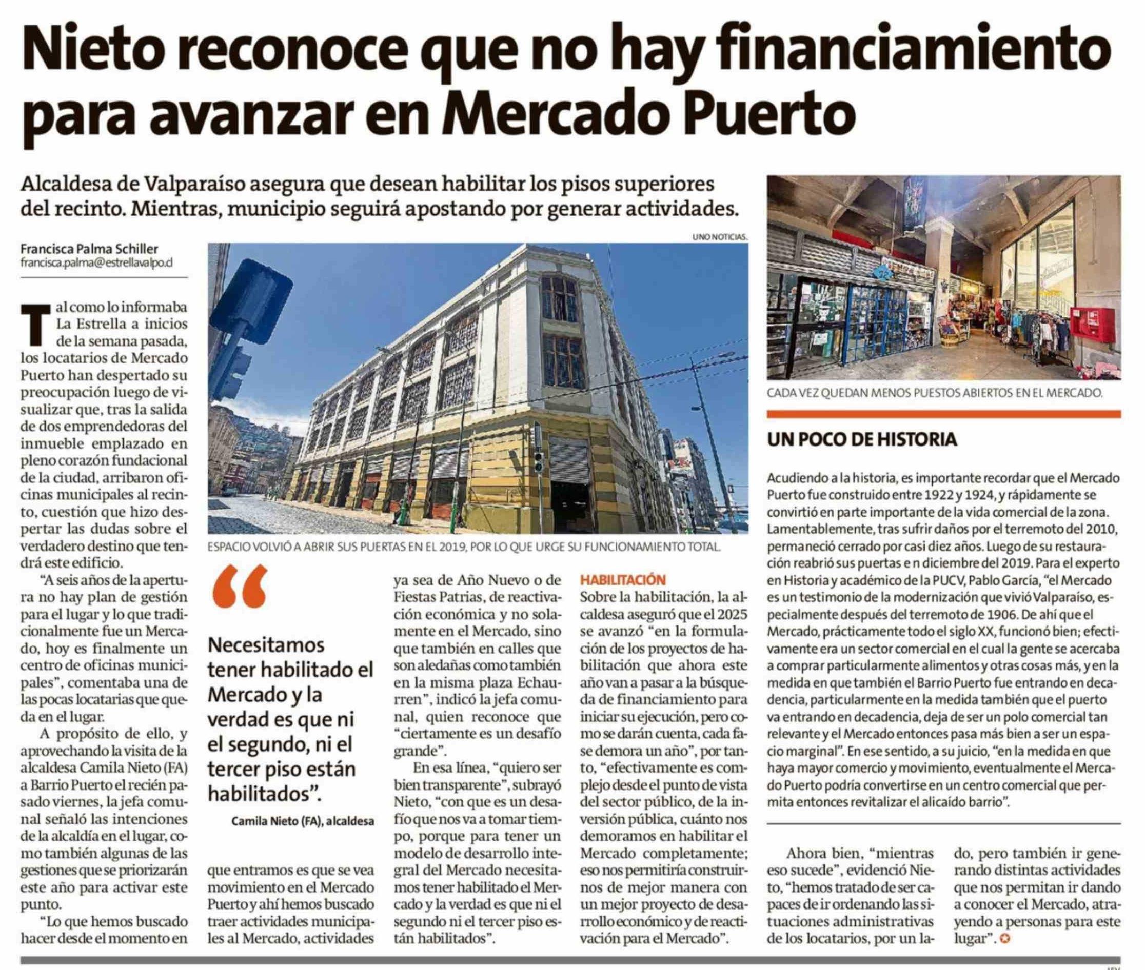 Nieto reconoce que no hay financiamiento para avanzar en Mercado Puerto 02-03-2026 La Estrella de Valparaíso |