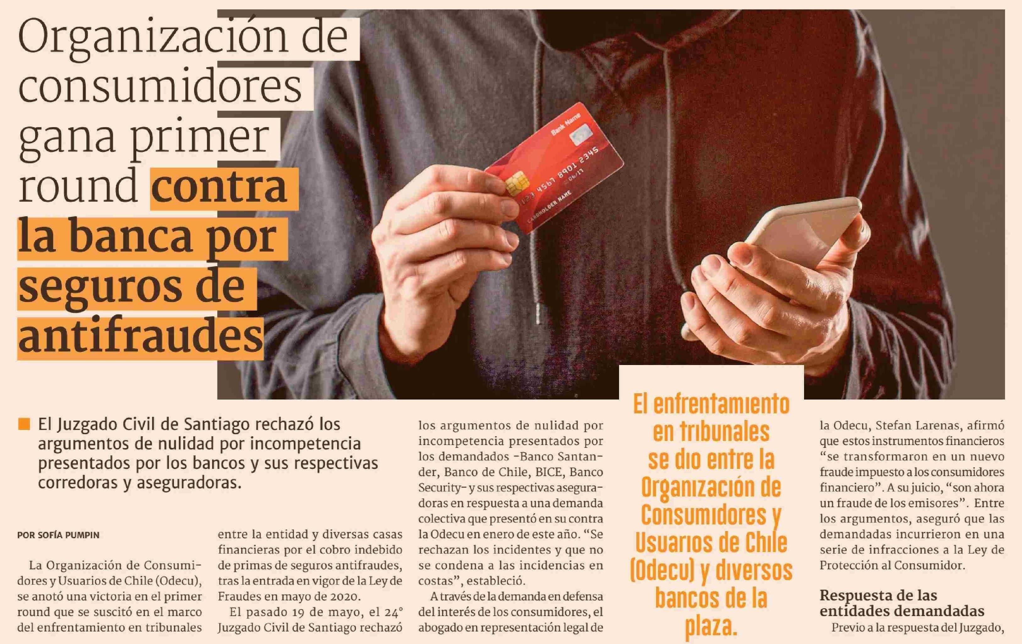 Organización de consumidores gana primer round contra la banca por seguros antifraudes 04-06-2025 Diario Financiero |