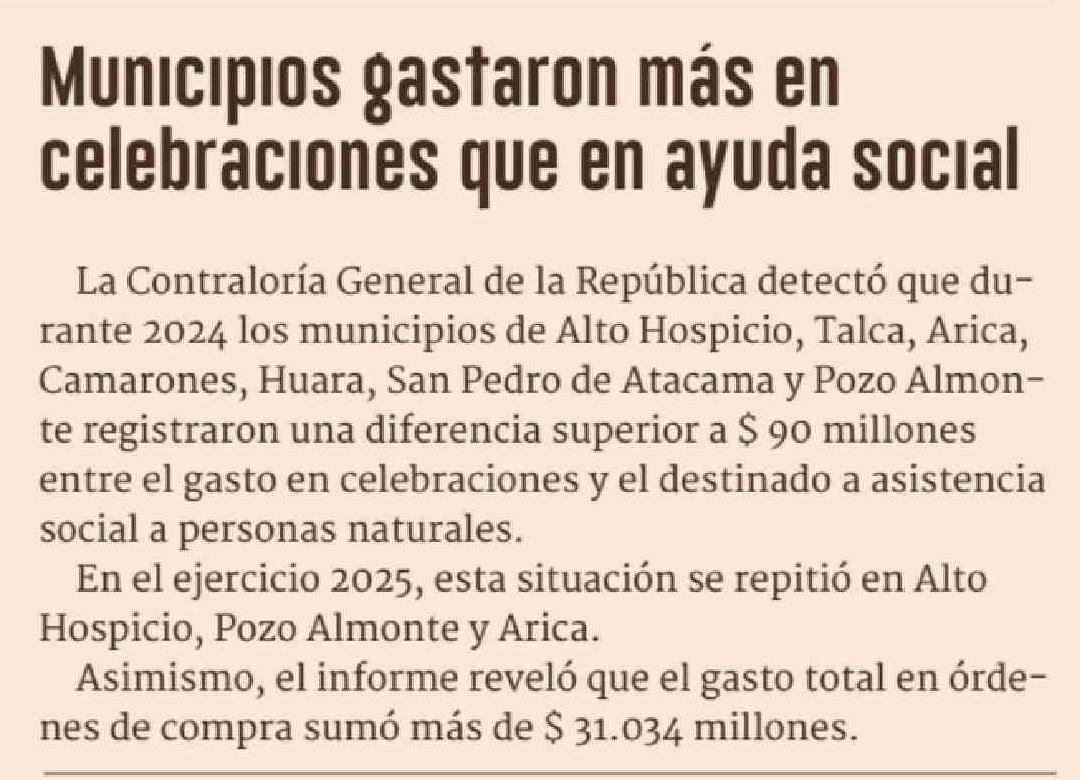 Título: Municipios gastaron más en celebraciones que en ayuda social