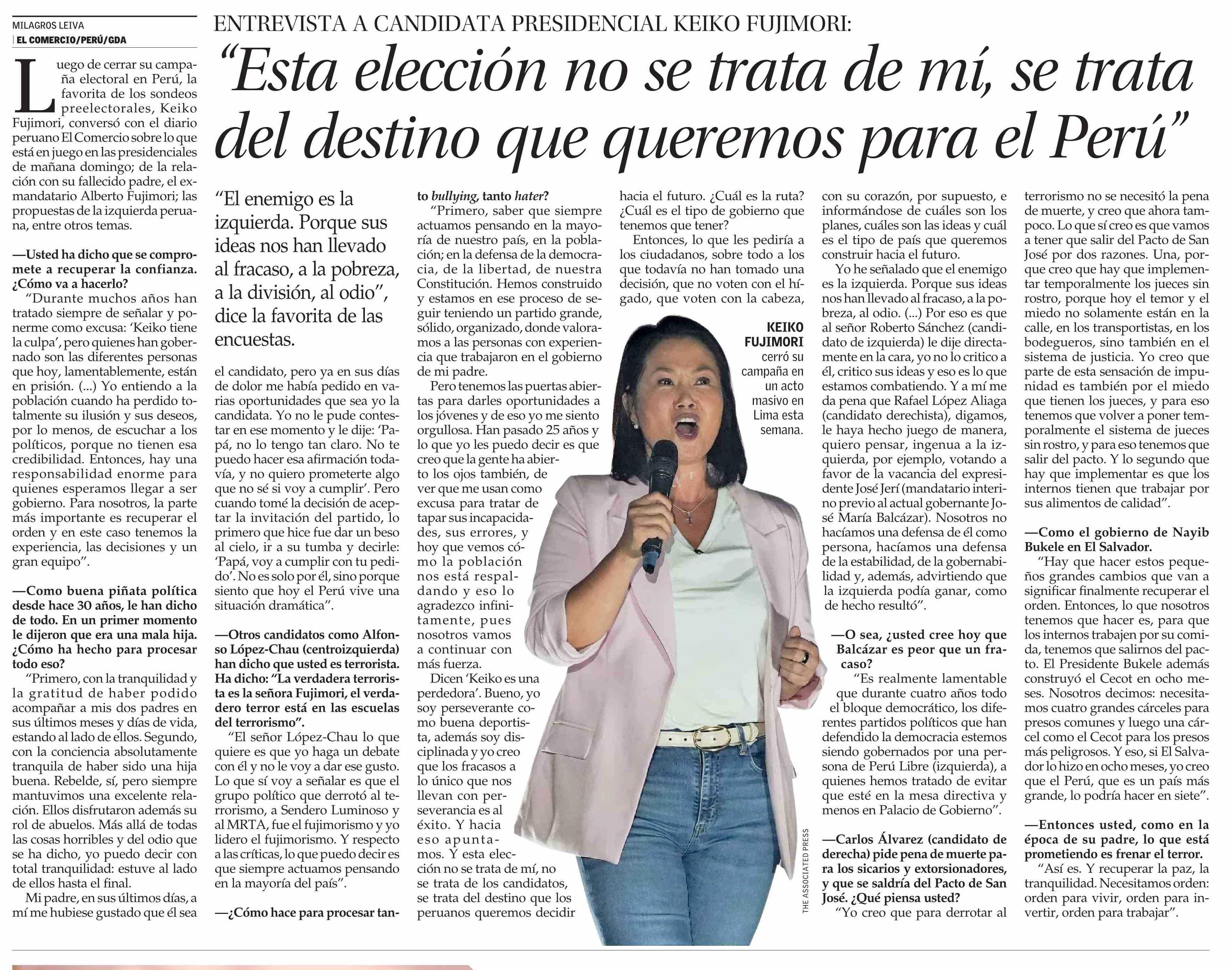 “Esta elección no se trata de mí, se trata del destino que queremos para el Perú” 11-04-2026 El Mercurio |