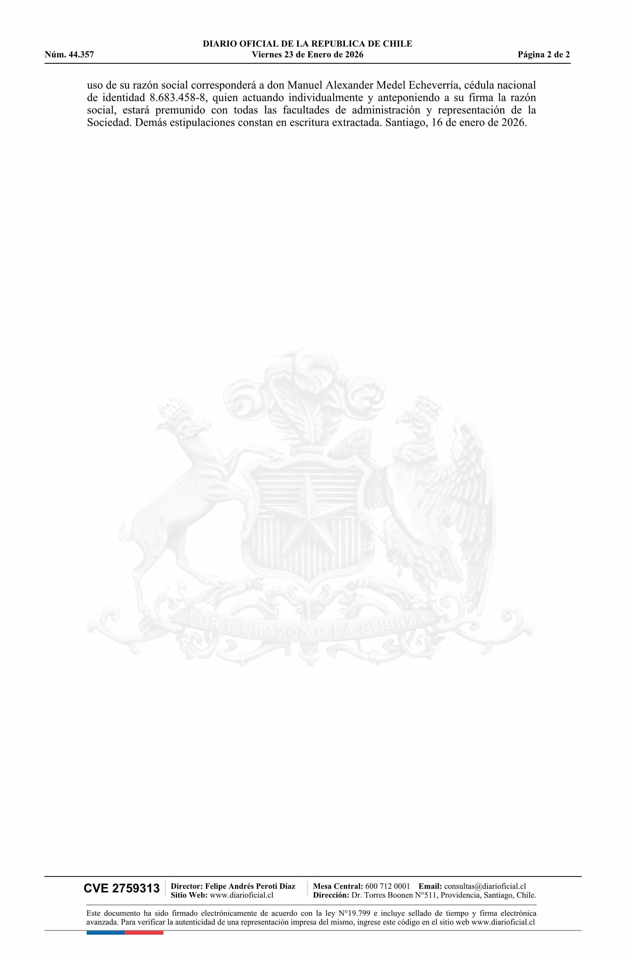 SOCIEDAD CONSTRUCTORA M3 LIMITADA 76.018.177-3 23-01-2026 Diario Oficial Edición Electrónica |
