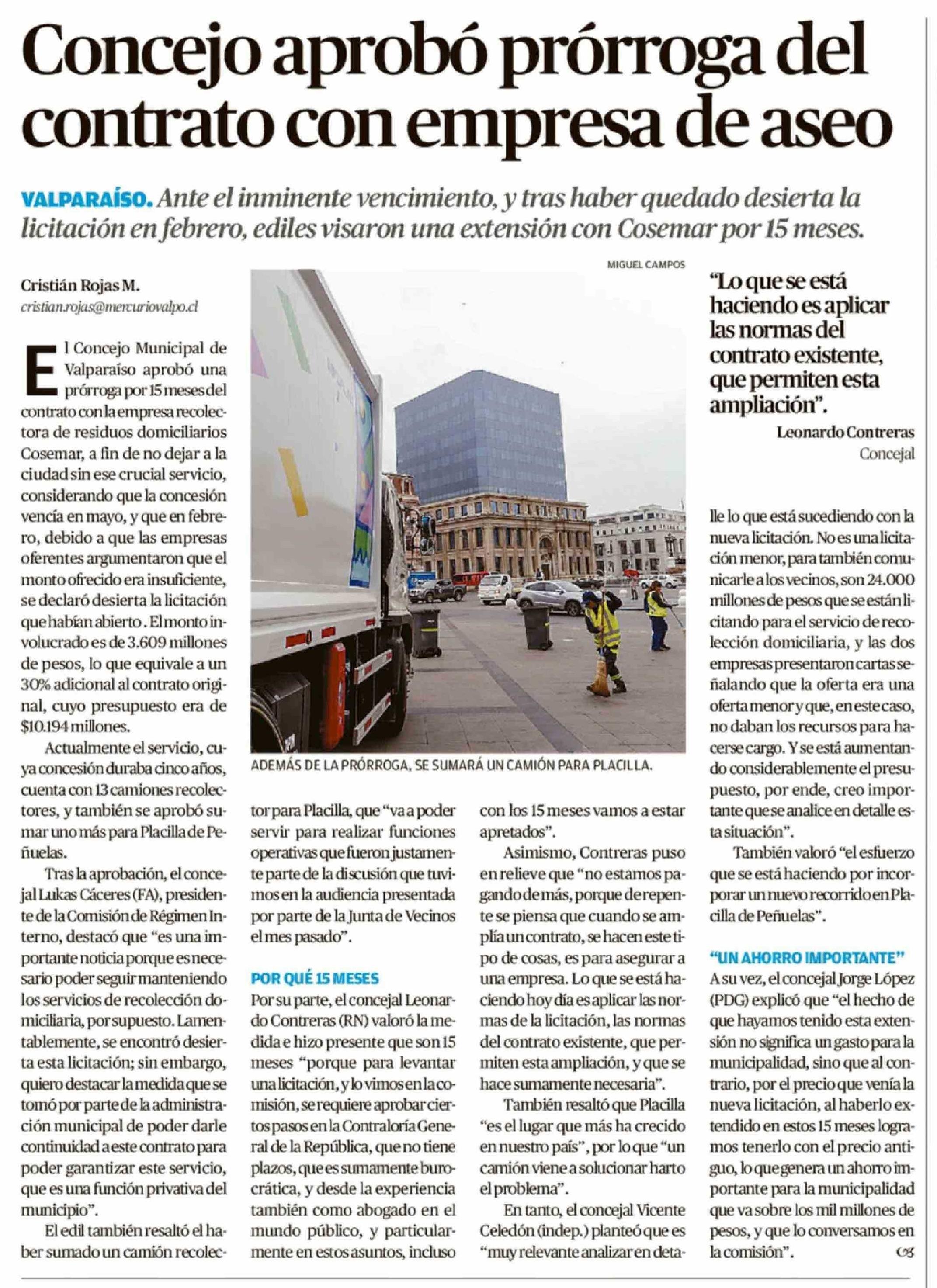 Concejo aprobó prórroga del contrato con empresa de aseo 11-04-2026 El Mercurio de Valparaíso |