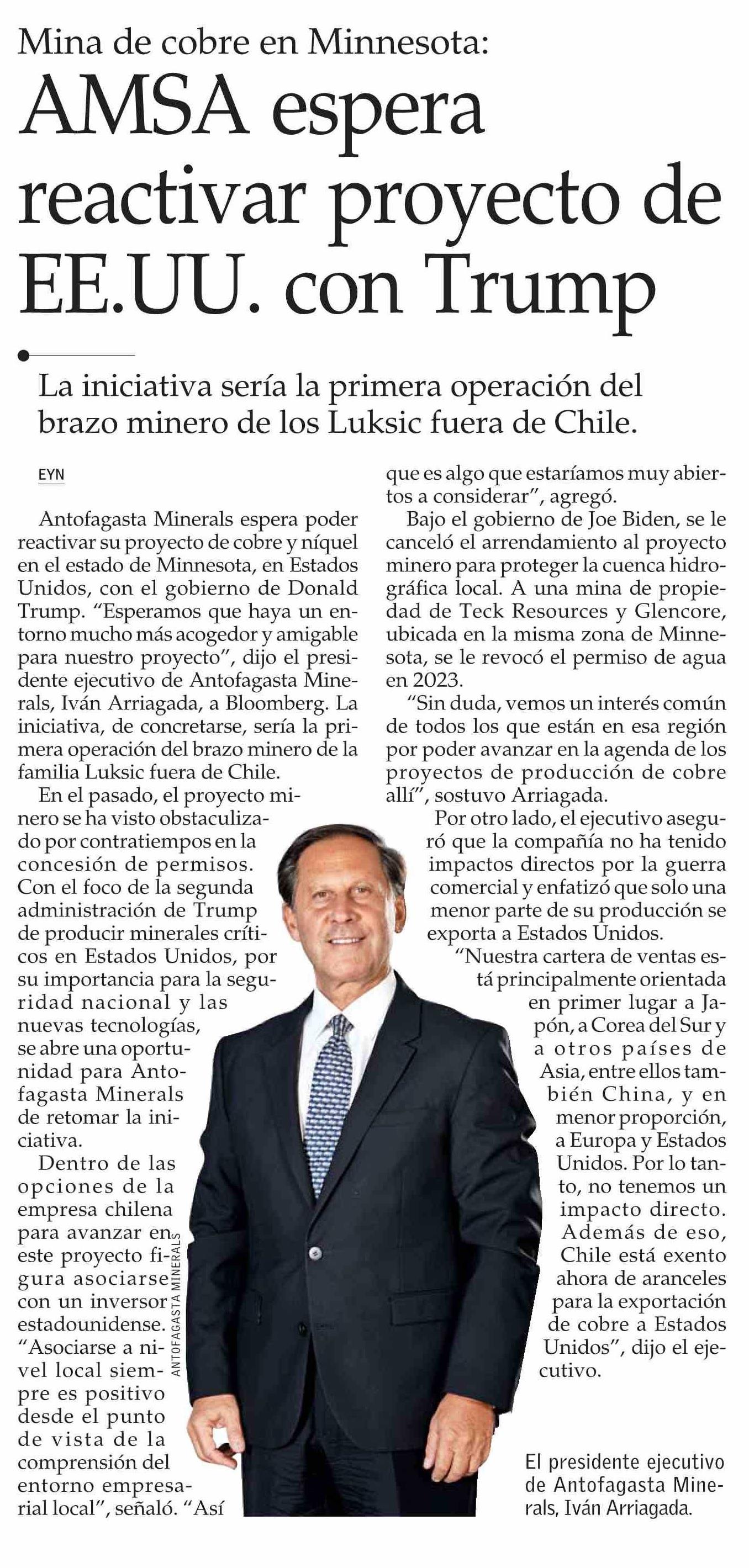 AMSA espera reactivar proyecto de EE.UU. con Trump 09-04-2025 El Mercurio |