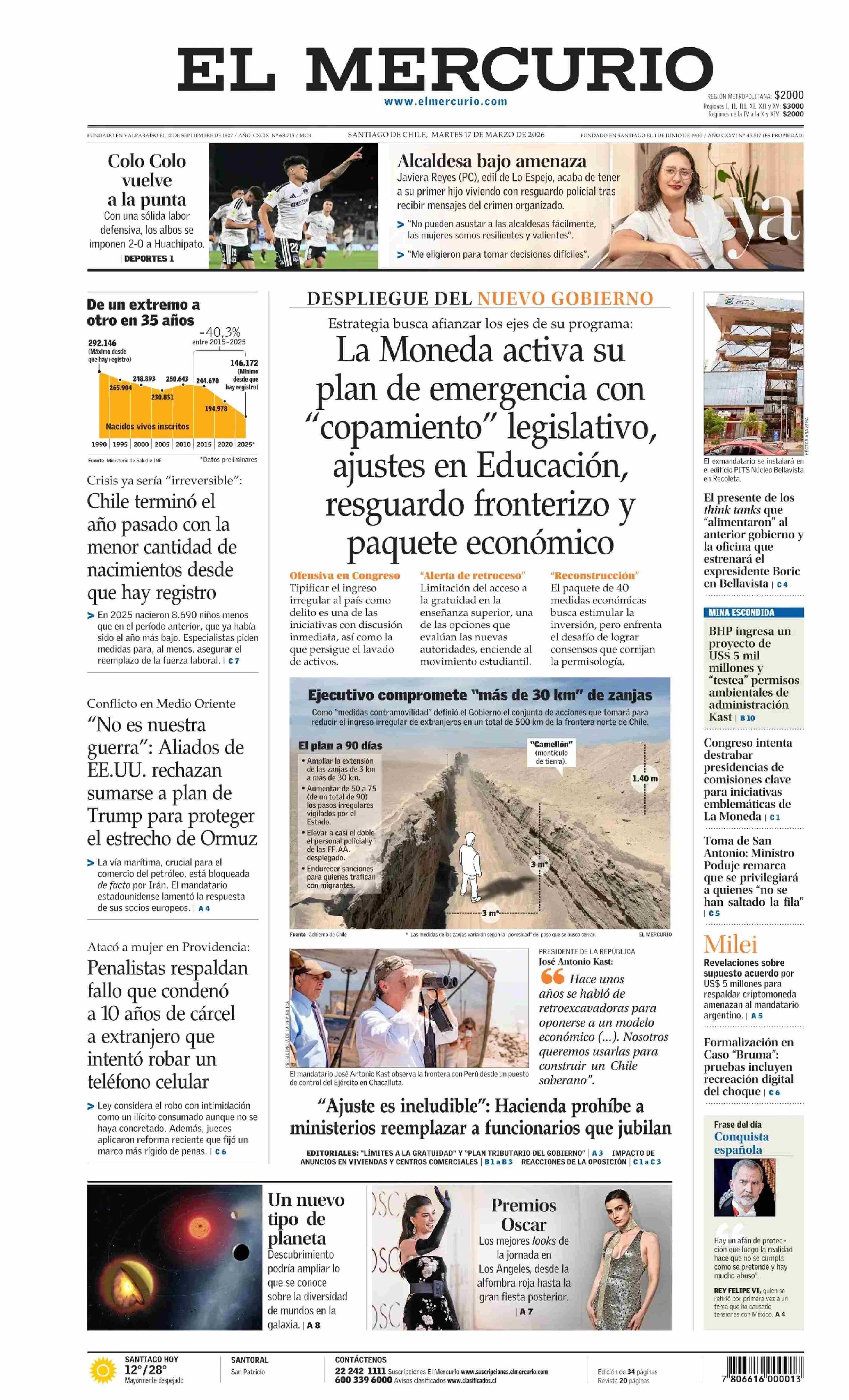 Fecha: 17-03-2026 Sector: Portada Región: Región Metropolitana de Santiago