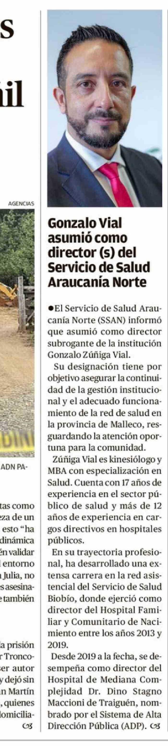 Gonzalo Vial asumió como director (s) del Servicio de Salud Araucania Norte 11-04-2026 El Austral de la Araucanía |
