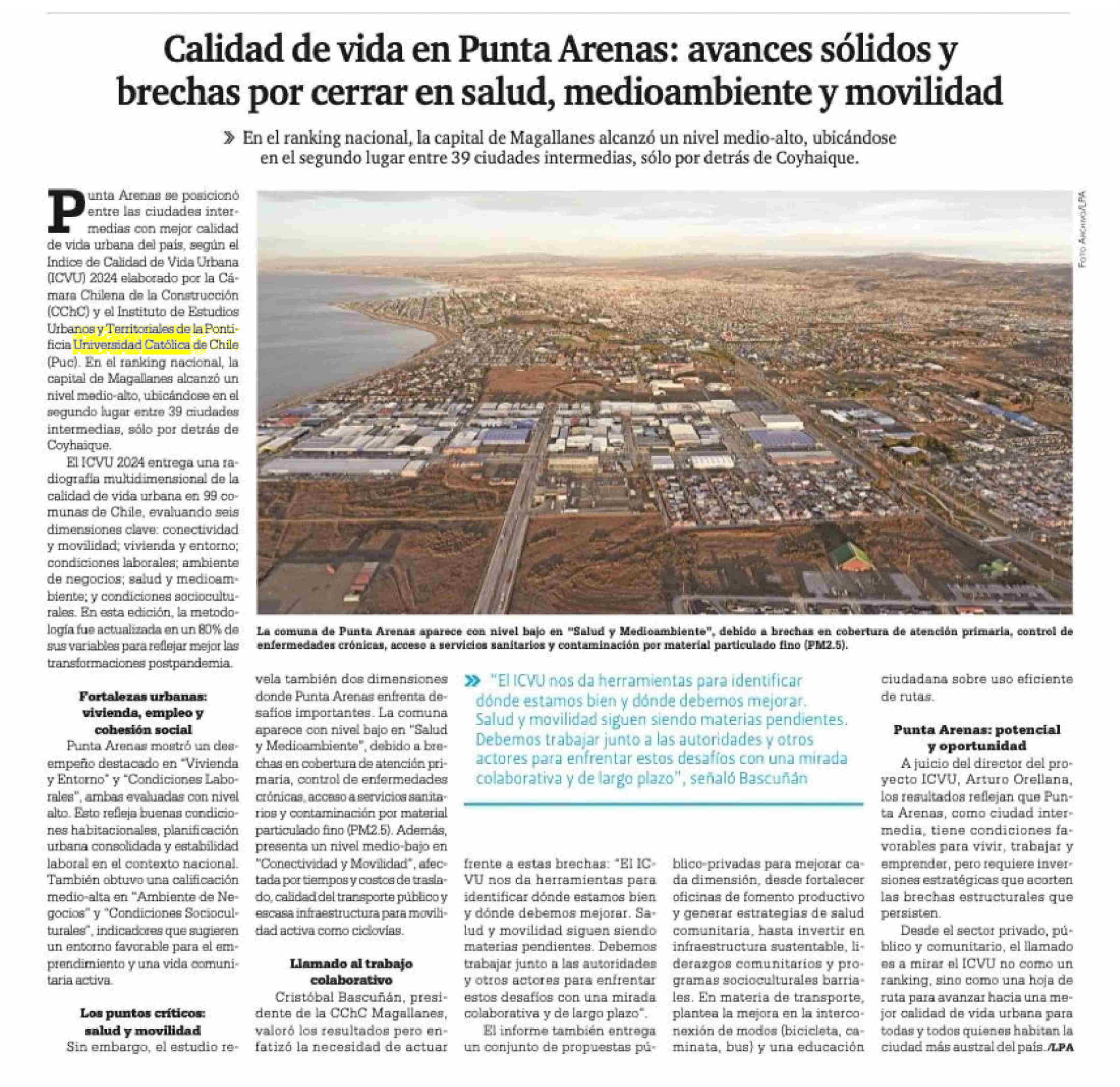 Calidad de vida en Punta Arenas: avances sólidos y brechas por cerrar en salud, medioambiente y movilidad 03-05-2025 La Prensa Austral |