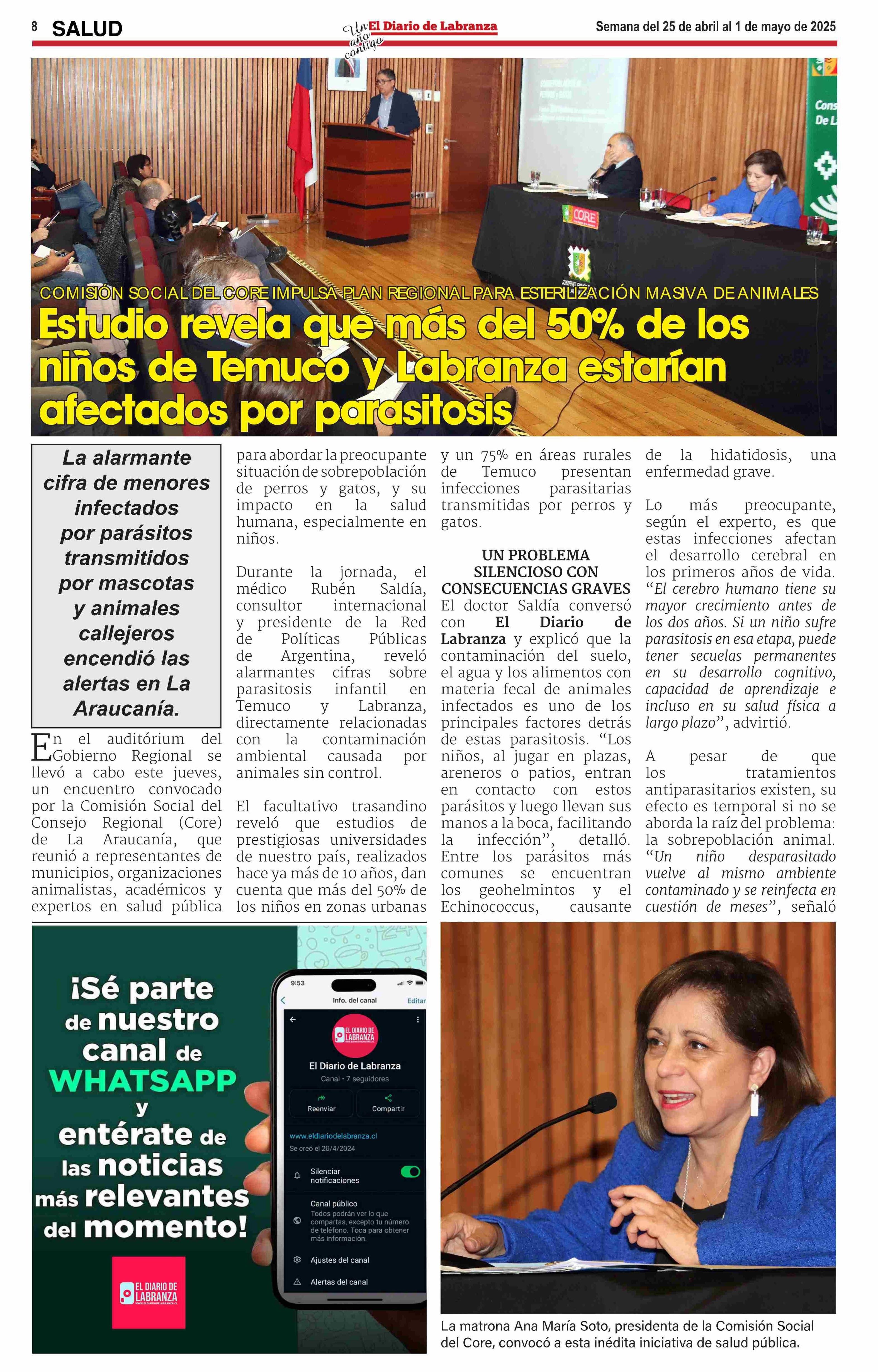 Estudio revela que más eñ 50% de los niños de Temuco y labranza estarían afectados por parasitosis 30-04-2025 EL DIARIO DE LABRANZA |