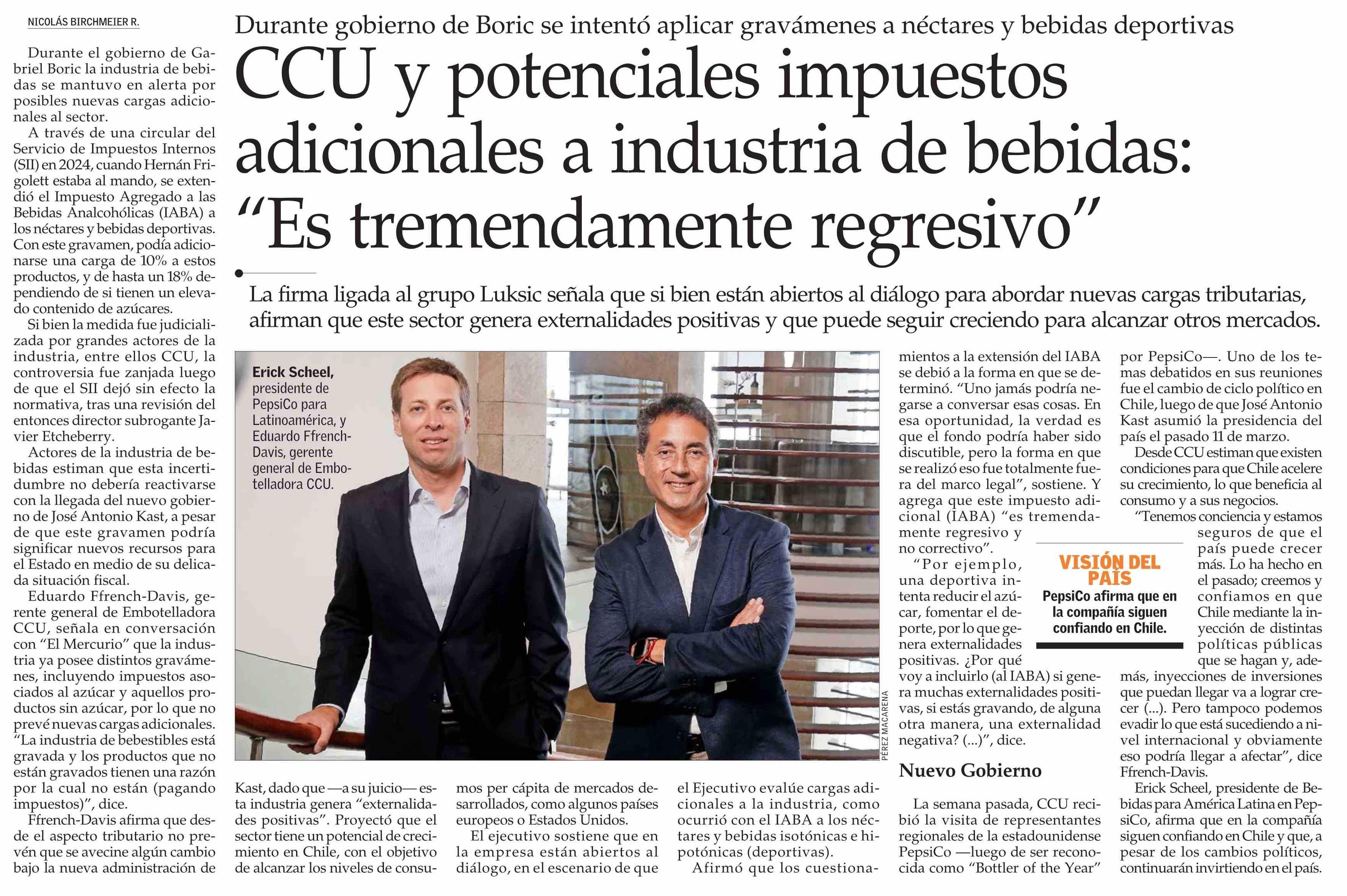Título: CCU y potenciales impuestos adicionales a industria de bebidas: “Es tremendamente regresivo”