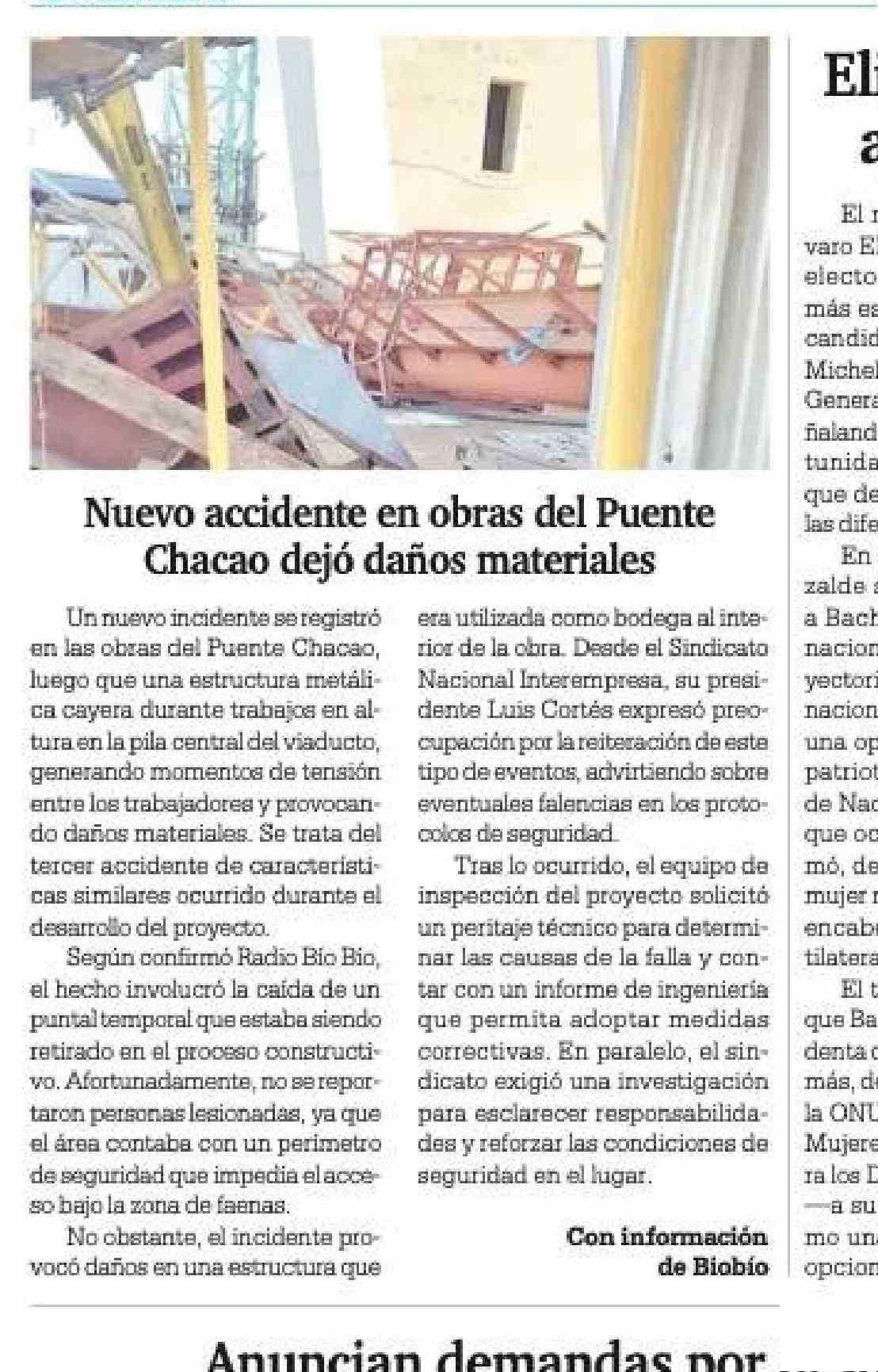 Título: Nuevo accidente en obras del Puente Chacao dejó daños materiales