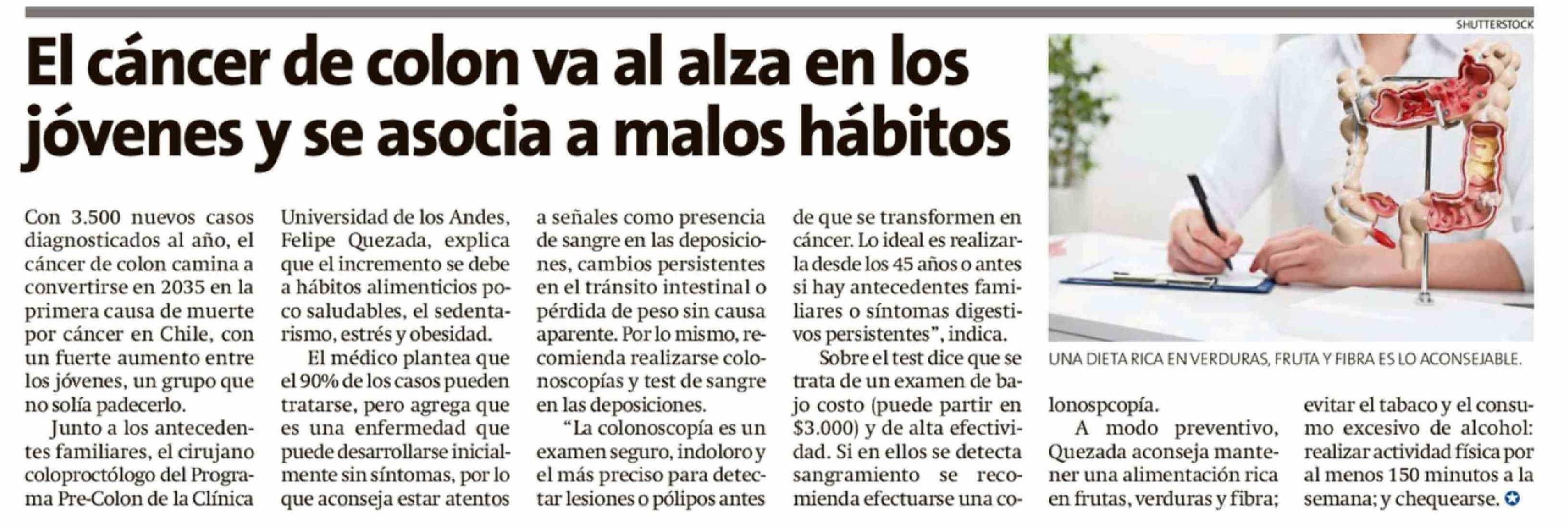 Título: El cáncer de colon va al alza en los jóvenes y se asocia a malos hábitos