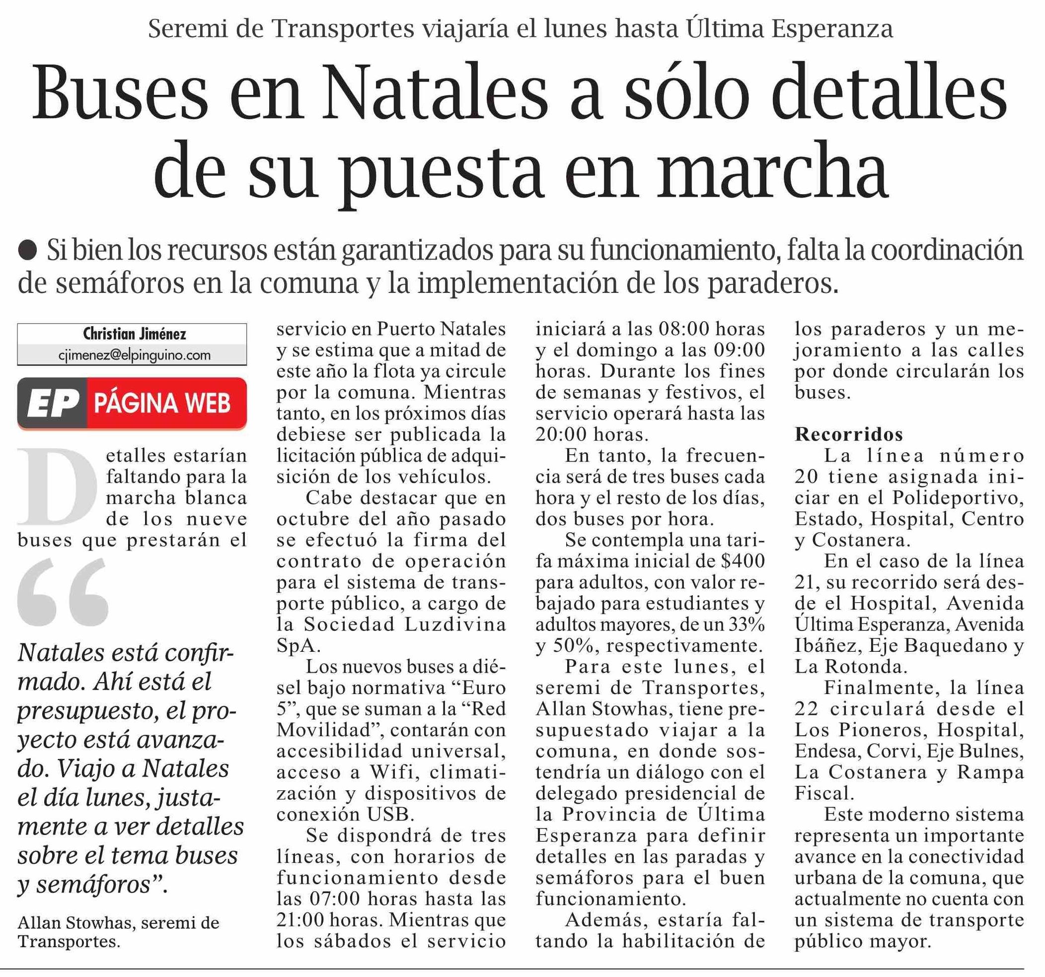 | Título: | Buses en Natales a sólo detalles de su puesta en marcha |