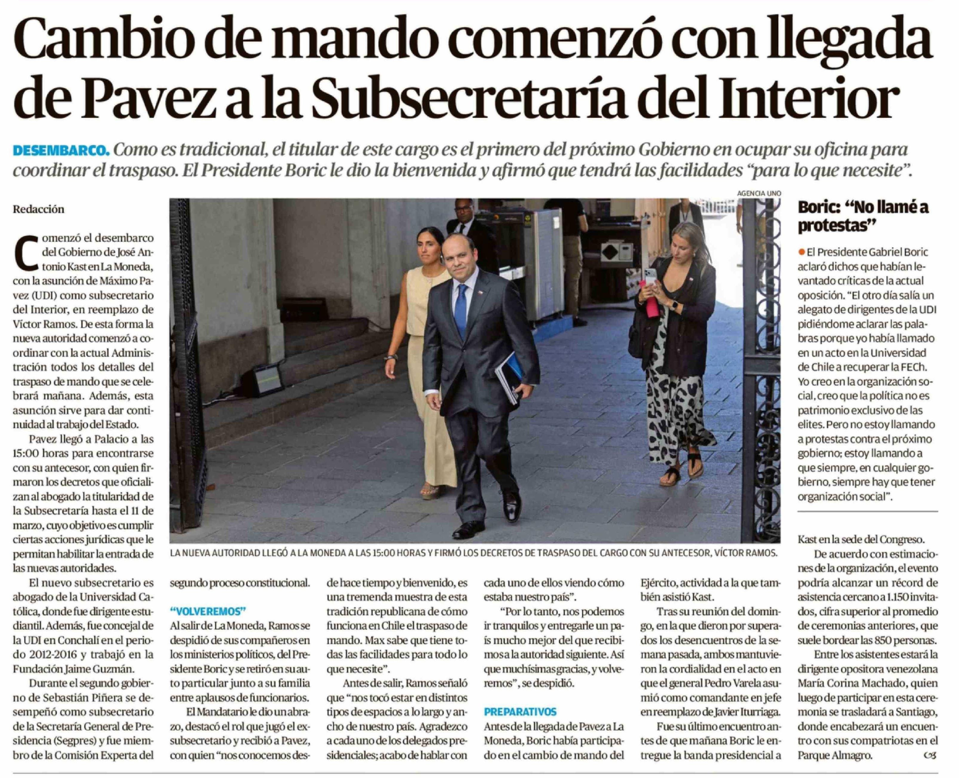 Título: Cambio de mando comenzó con llegada de Pavez a la Subsecretaría del Interior