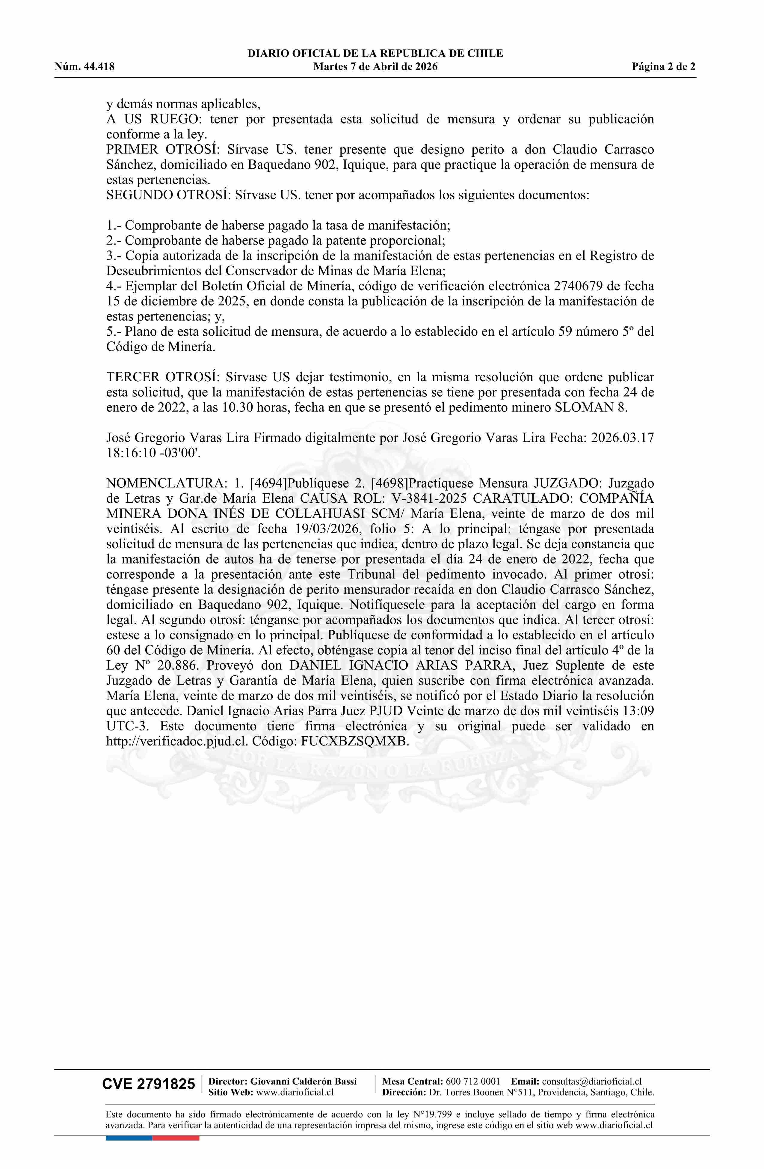 07-04-2026 DIARIO OFICIAL CHILE - BOLETÍN OFICIAL DE MINERÍA