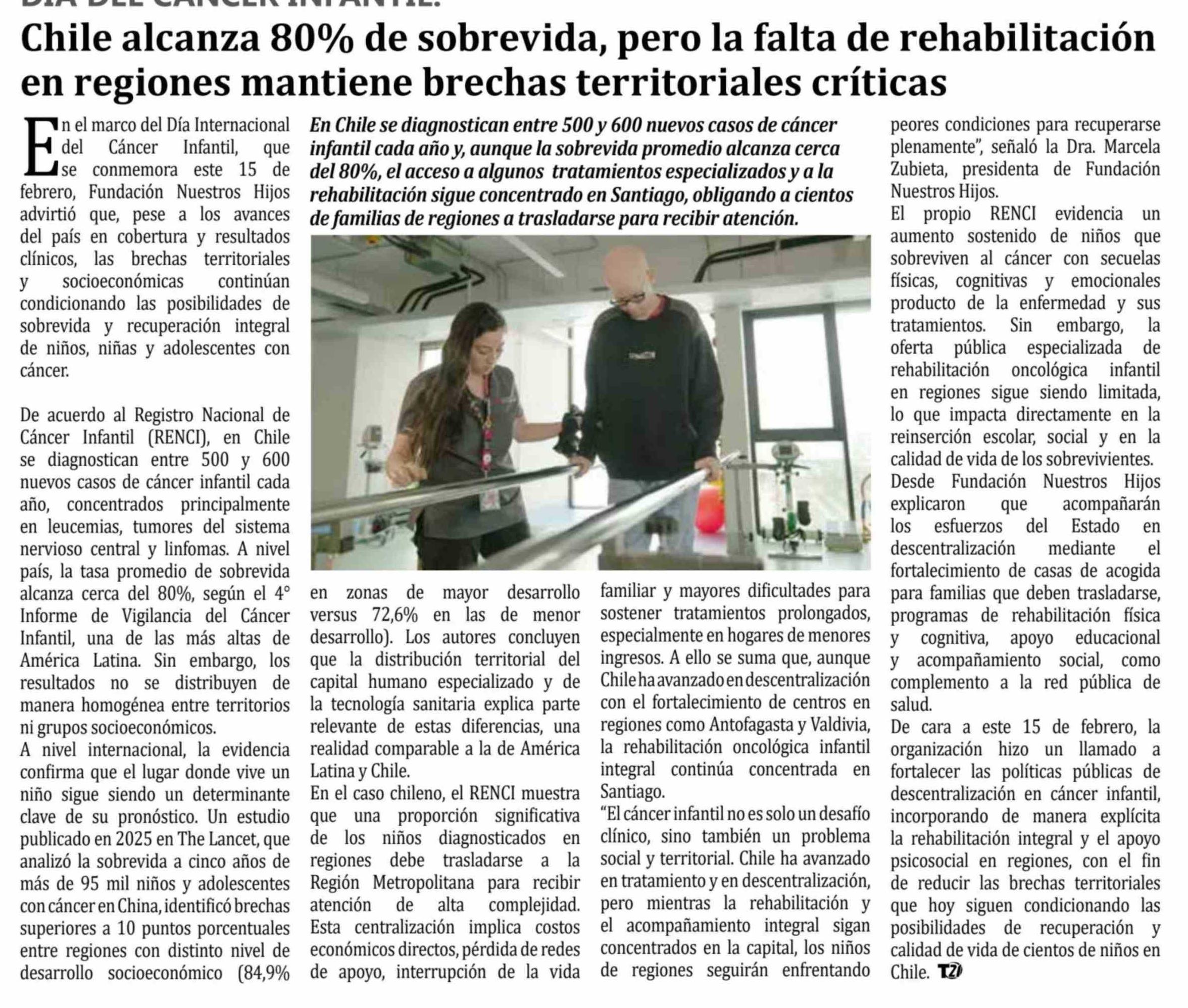 Título: Chile alcanza 80% de sobrevida, pero la falta de rehabilitación en regiones mantiene brechas territoriales críticas