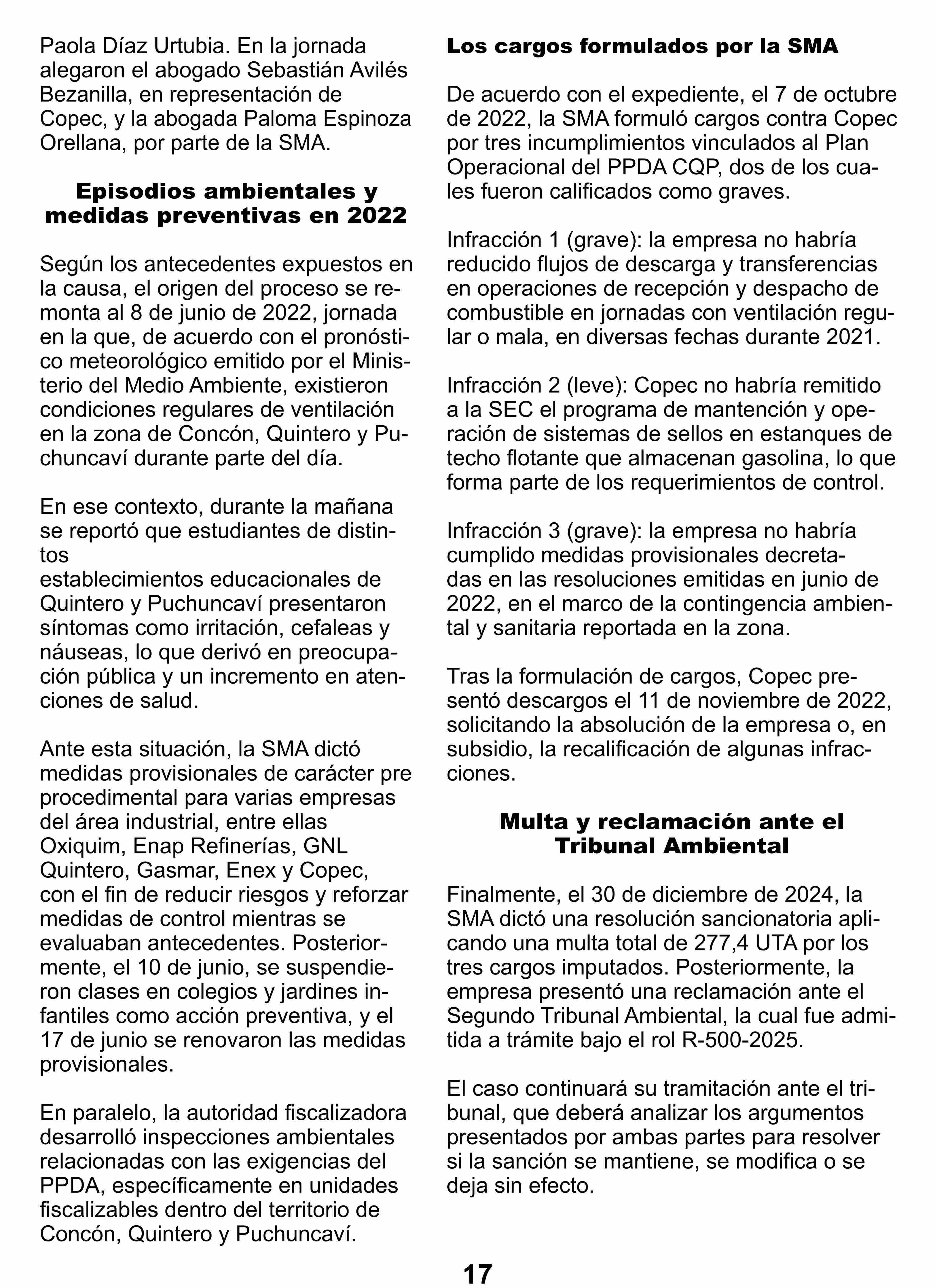 Concón, Quintero y Puchuncaví: Copec impugna sanción de la SMA por incumplimientos al plan de descontaminación 22-01-2026 Contraplano Reñaca-Concón-Quintero-Puchuncavi-Zapa |