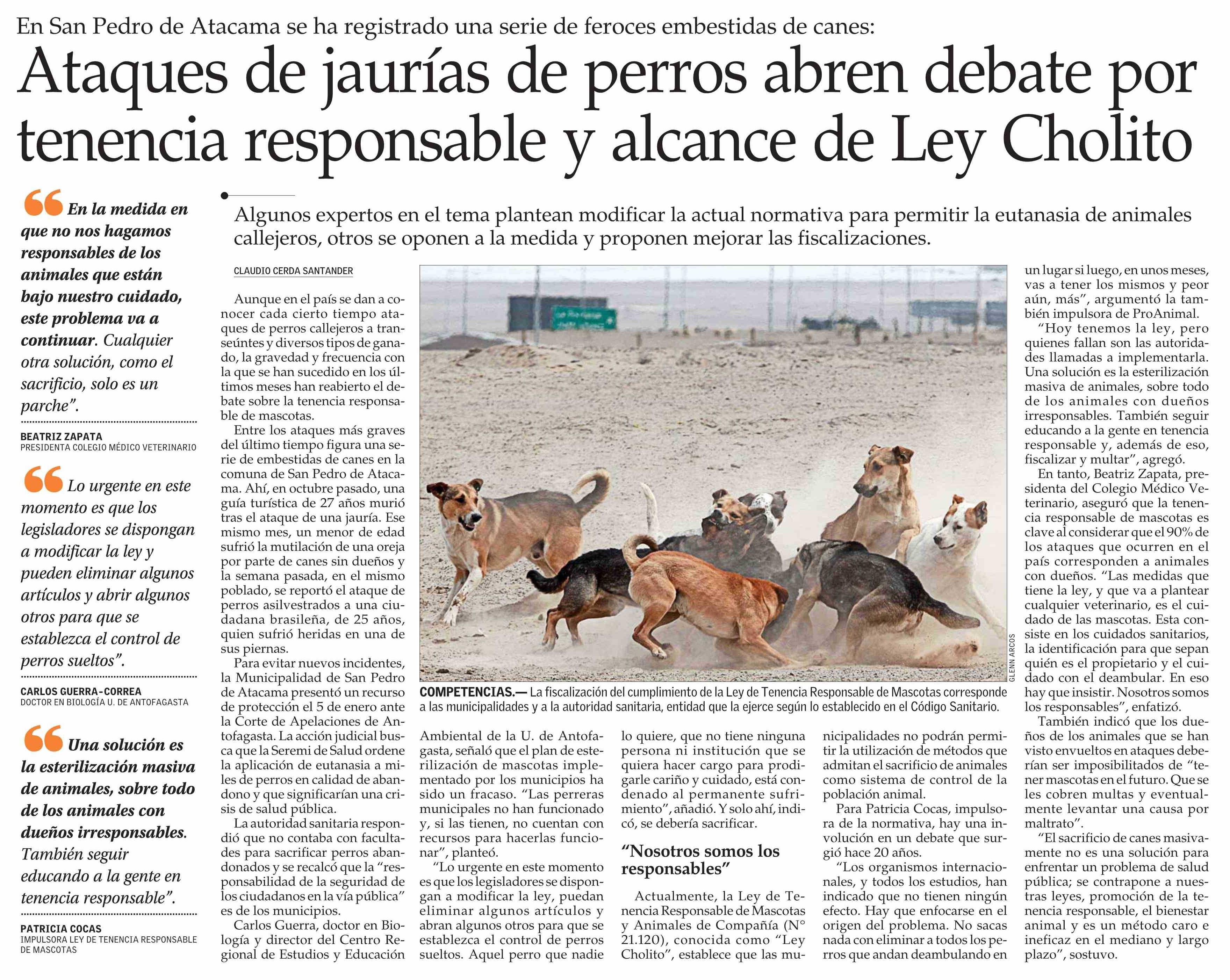 Ataques de jaurías de perros abren debate por tenencia responsable y alcance de Ley Cholito 15-01-2024 El Mercurio |
