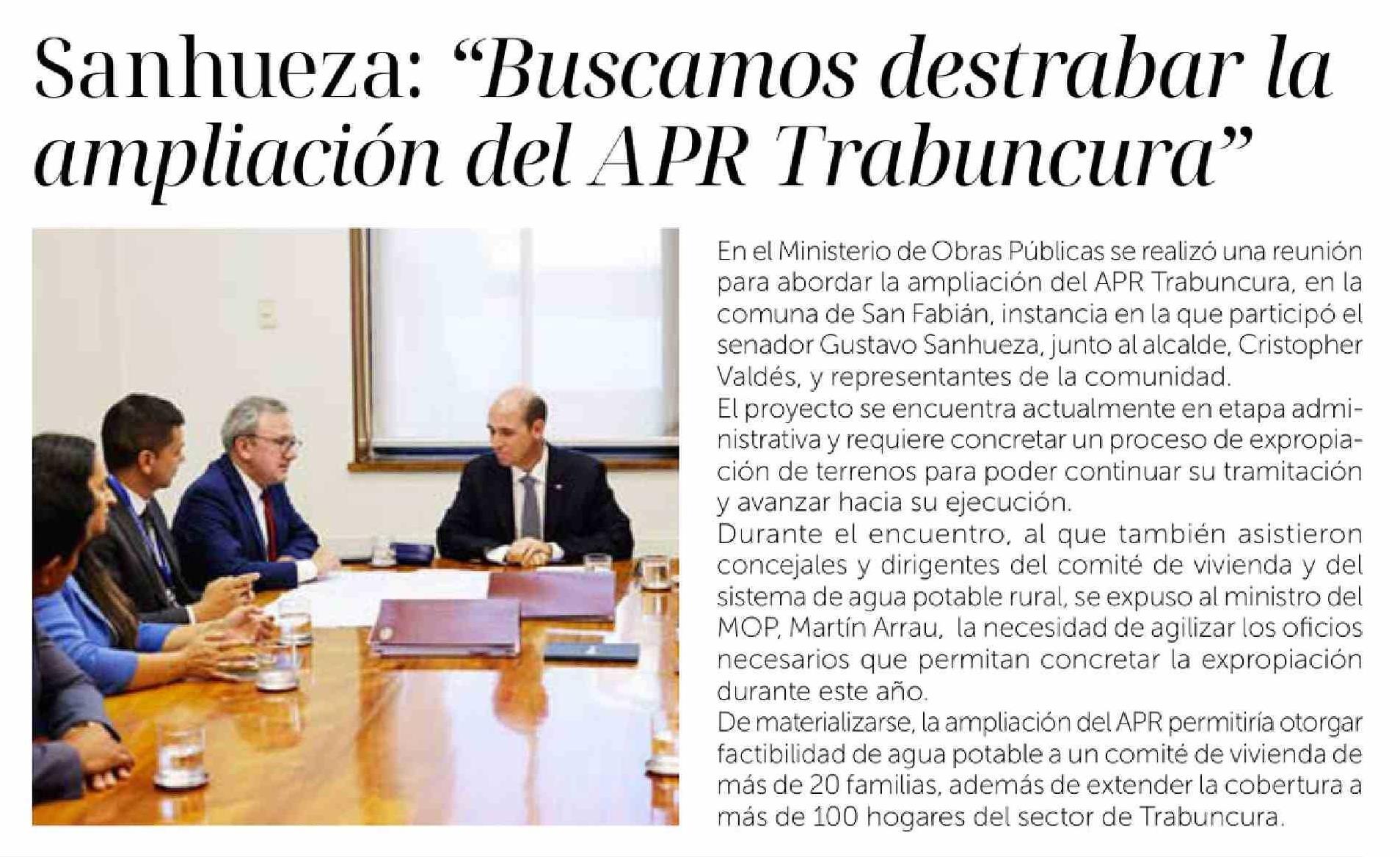 | Título: | Sanhueza: "Buscamos destrabar la ampliación del APR Trabuncura" |