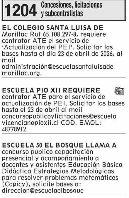 AVISO LICITACIONES: Área Educación 23-04-2026 El Mercurio |