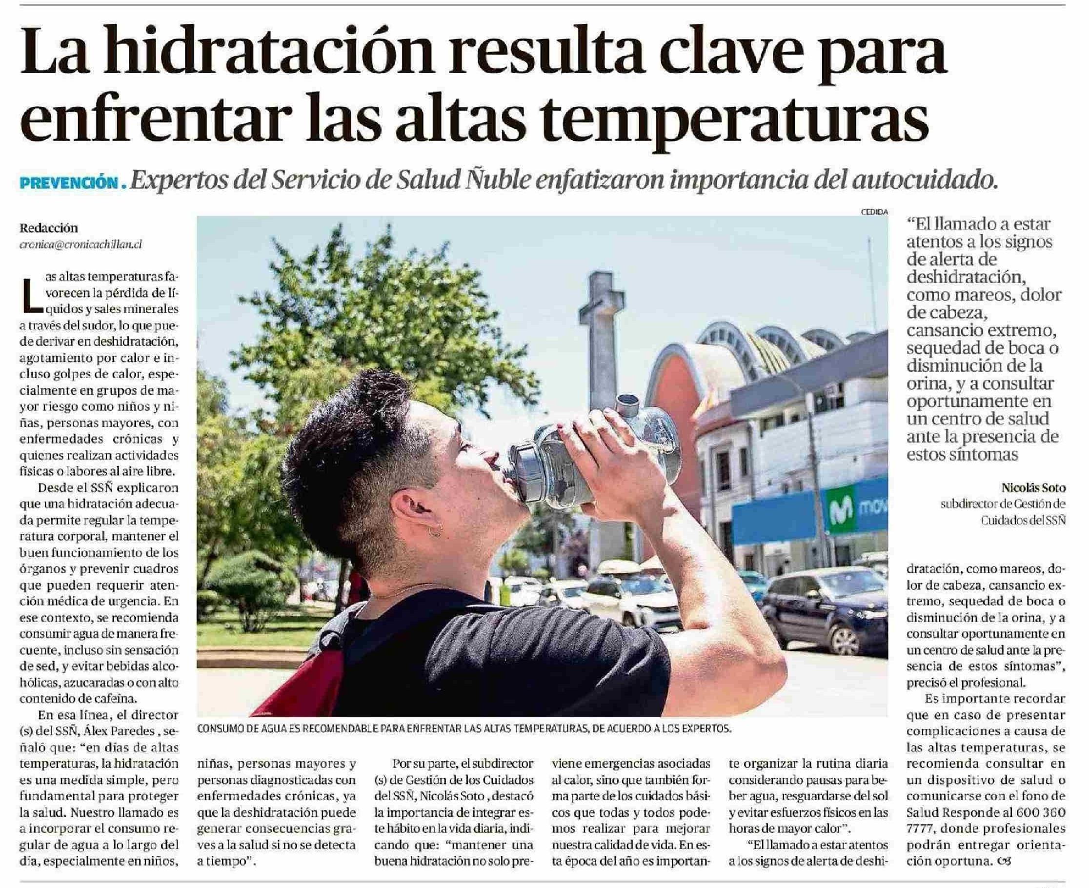 La hidratación resulta clave para enfrentar las altas temperaturas 10-01-2026 Crónica de Chillán |