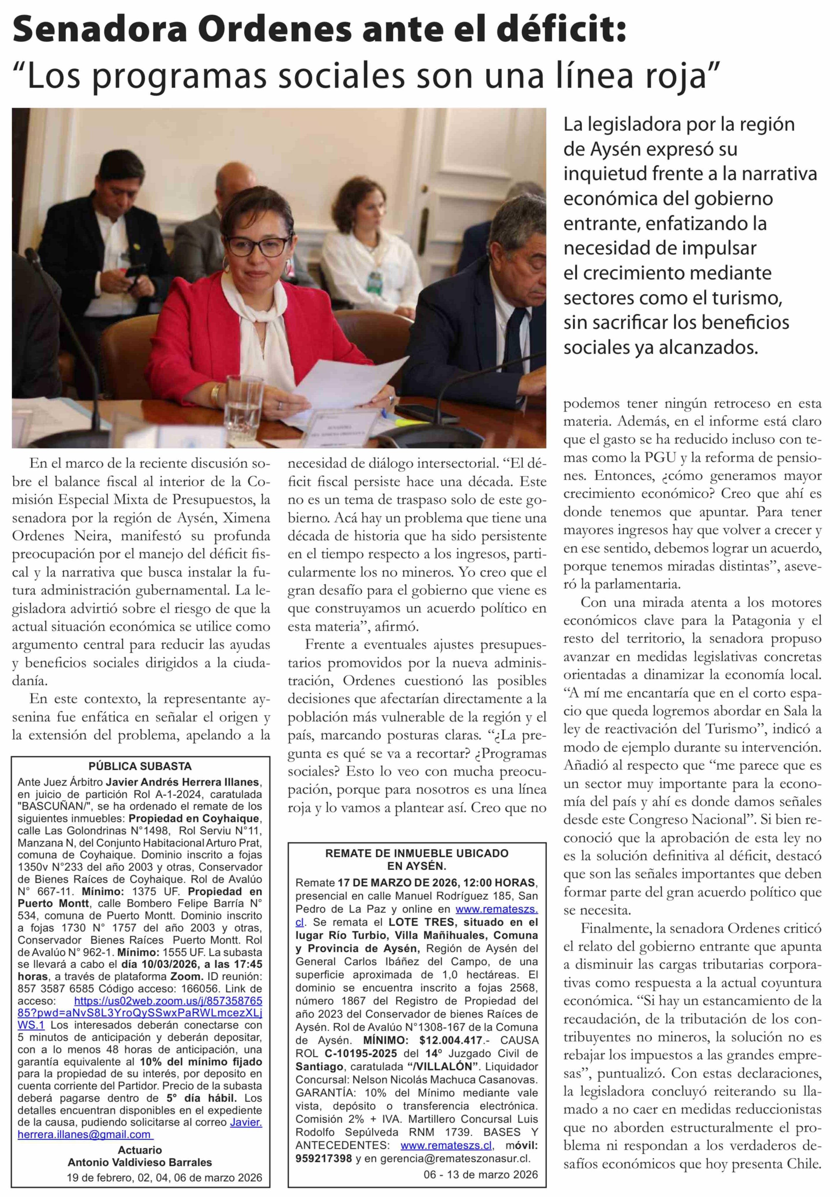 Fecha: 06-03-2026 Sector: Noticia general Región: Región Aysén del General Carlos Ibáñez del Campo
