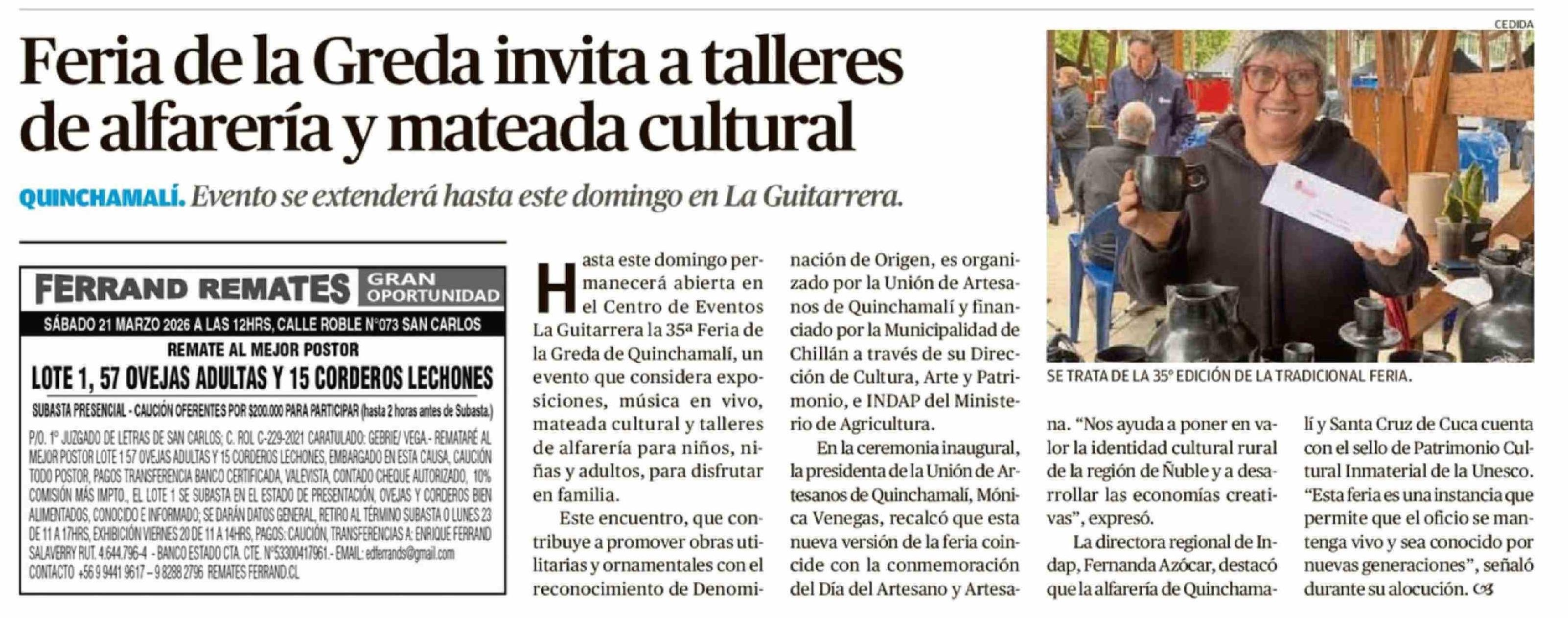 Feria de la Greda invita a talleres de alfarería y mateada cultural 20-03-2026 Crónica de Chillán |