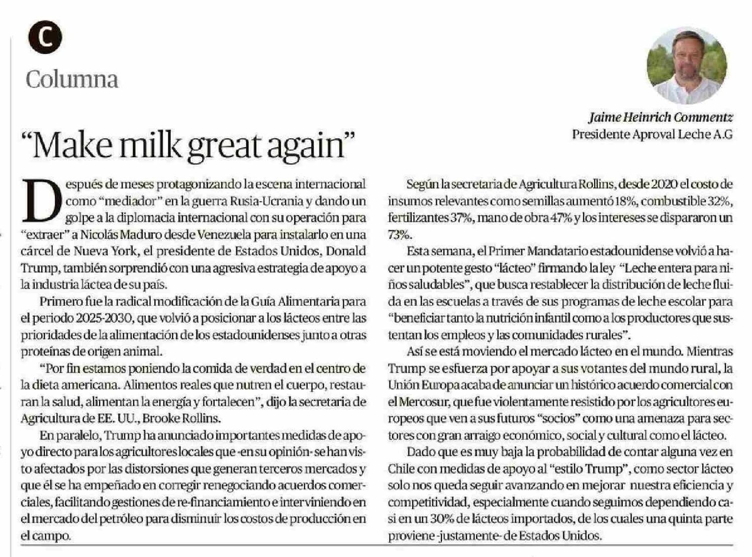 Título: Columnas de Opinión: "Make milk great again"