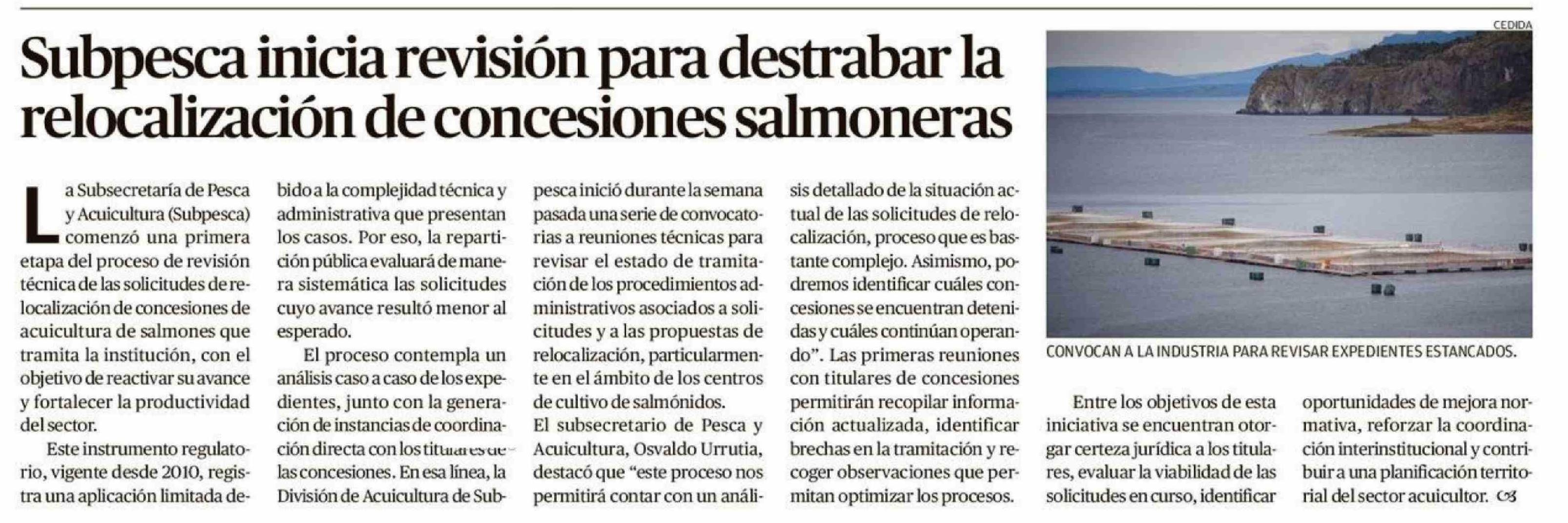 | Título: | Subpesca inicia revisión para destrabar la relocalización de concesiones salmoneras |
