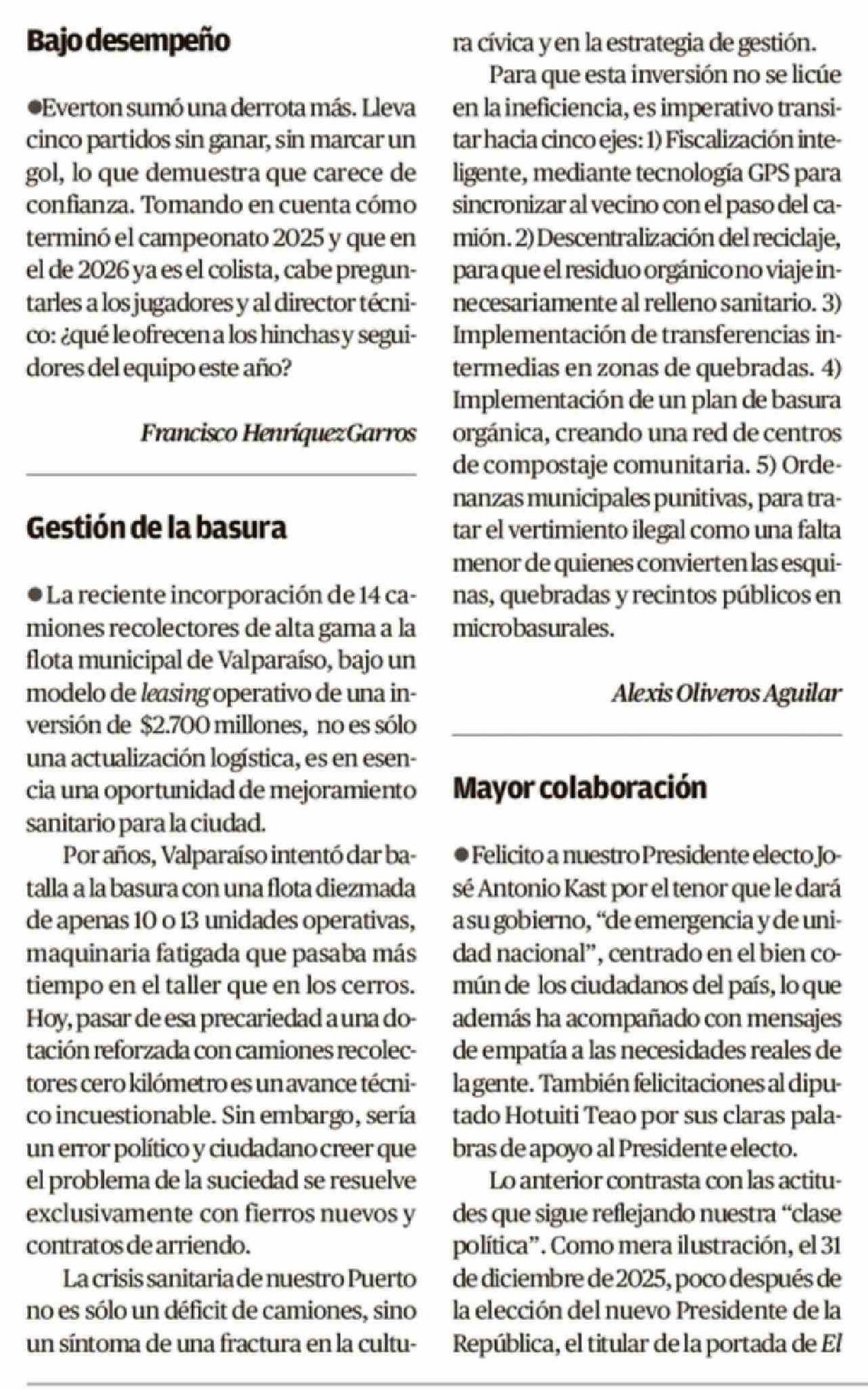 Cartas: Gestión de la basura 12-02-2026 El Mercurio de Valparaíso |