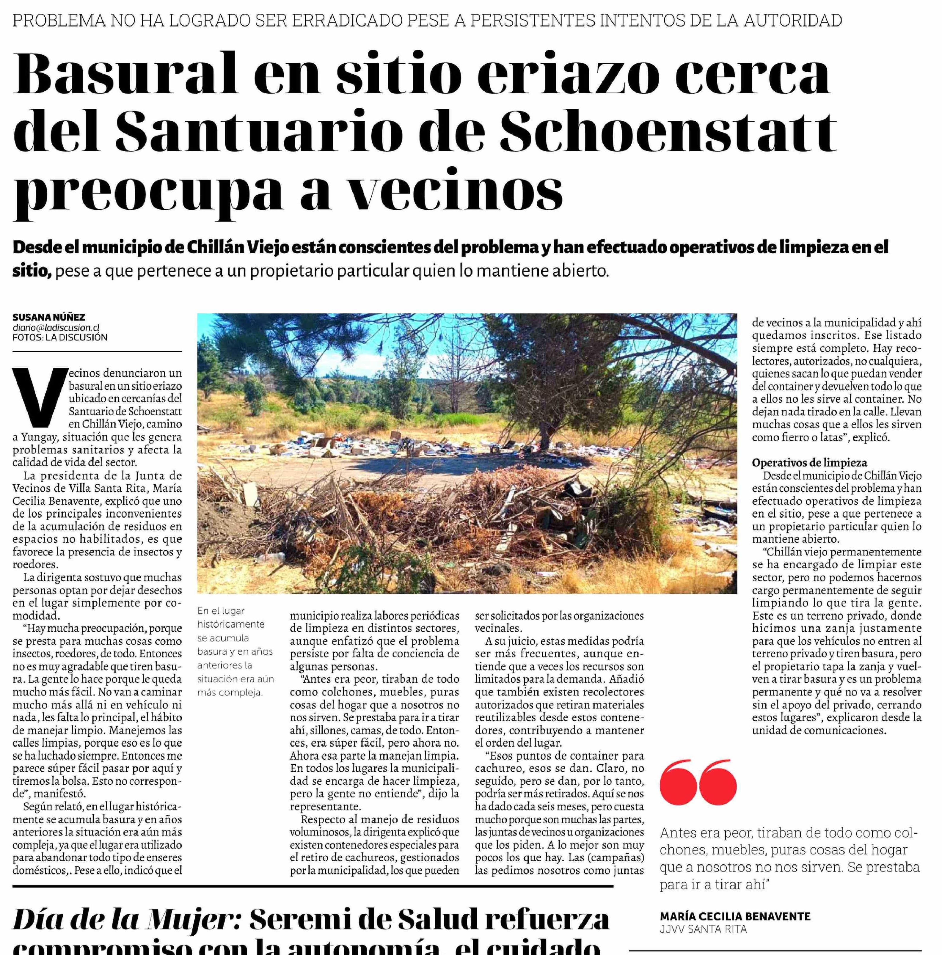 Basural en sitio eriazo cerca del Santuario de Schoenstatt preocupa a vecinos 09-03-2026 La Discusión |