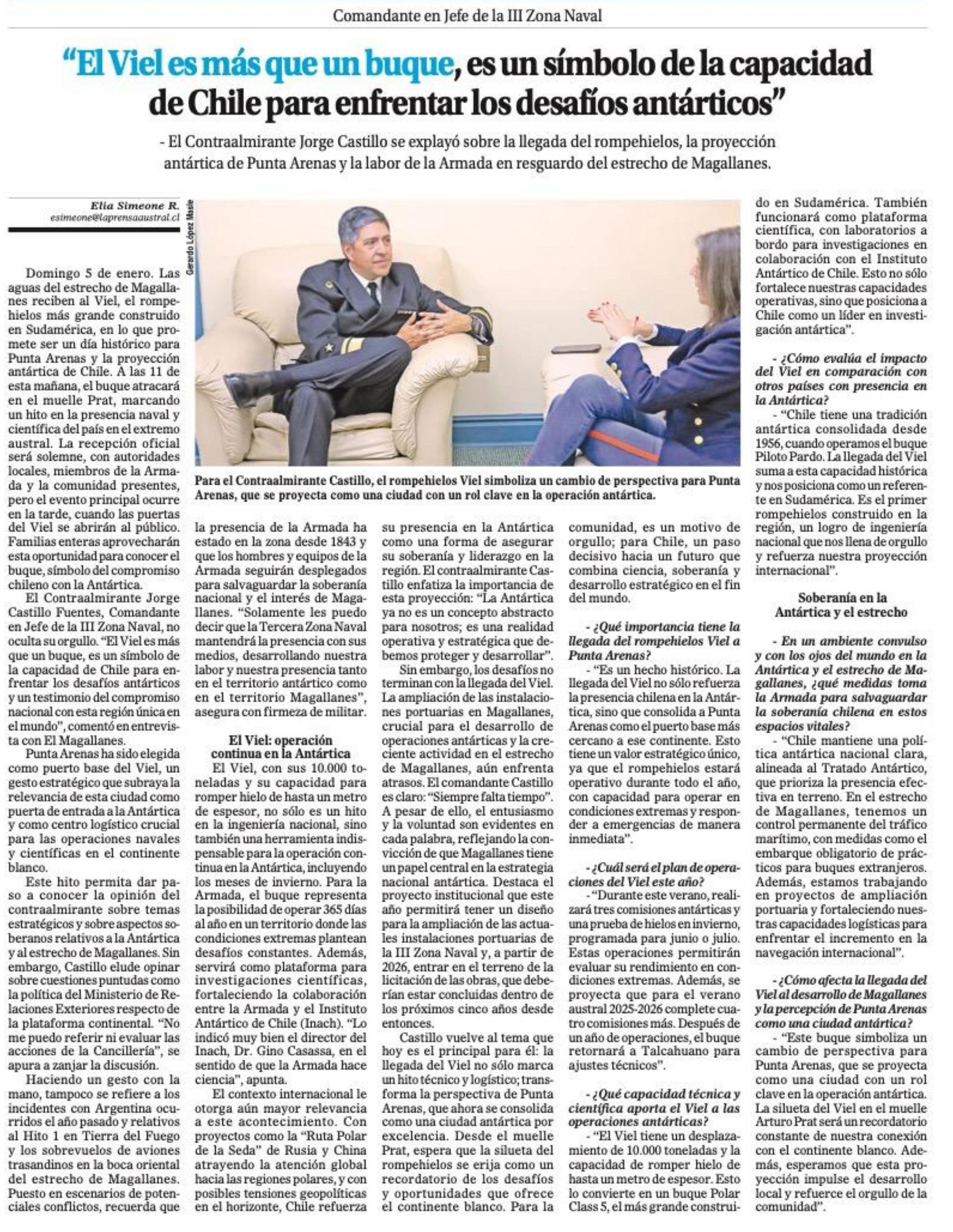 “El Viel es más que un buque, es un símbolo de la capacidad de Chile para enfrentarlos desafíos antárticos” 05-01-2025 El Magallanes |