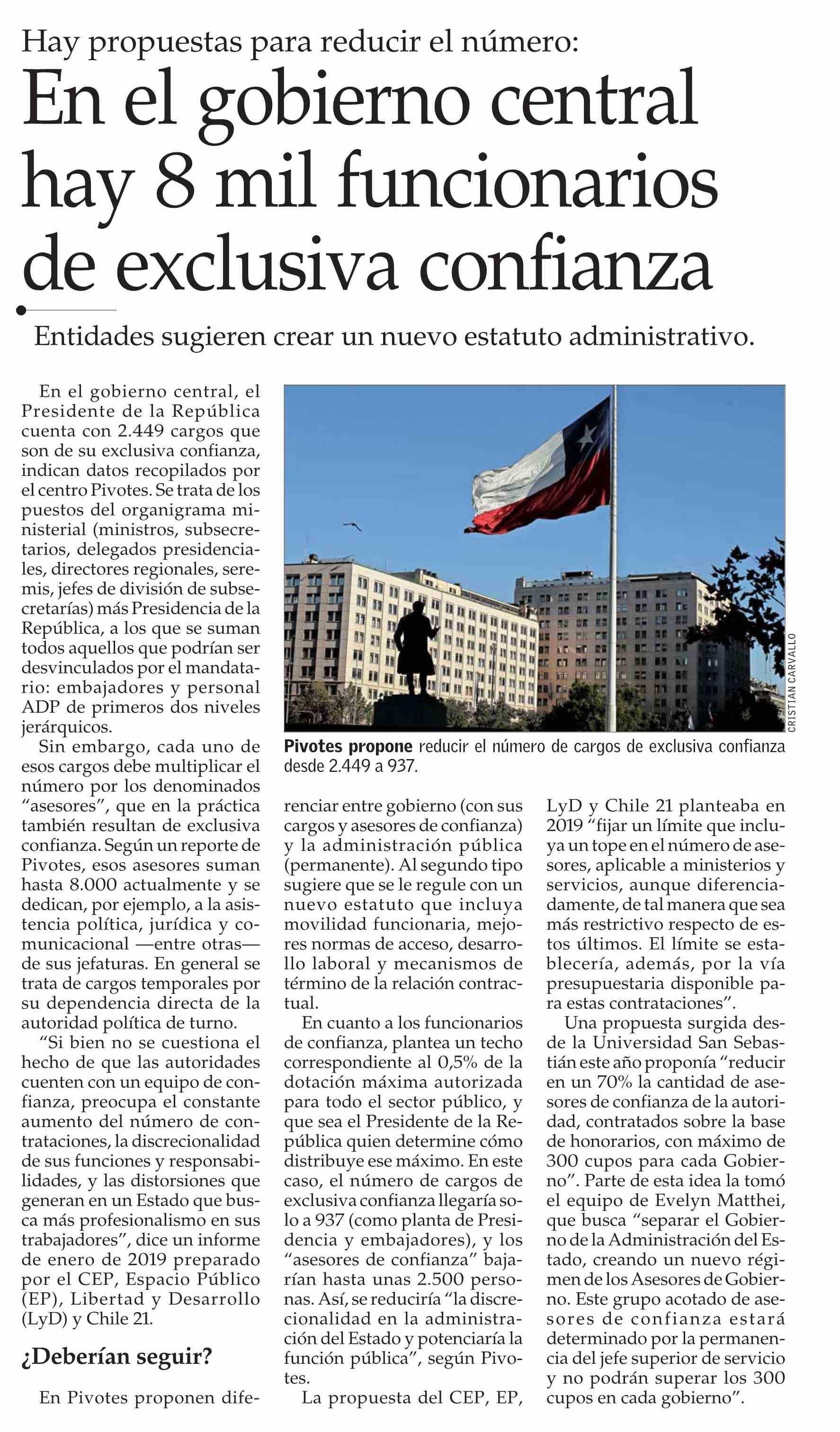En el gobierno central hay 8 mil funcionarios de exclusiva confianza 28-05-2025 El Mercurio |