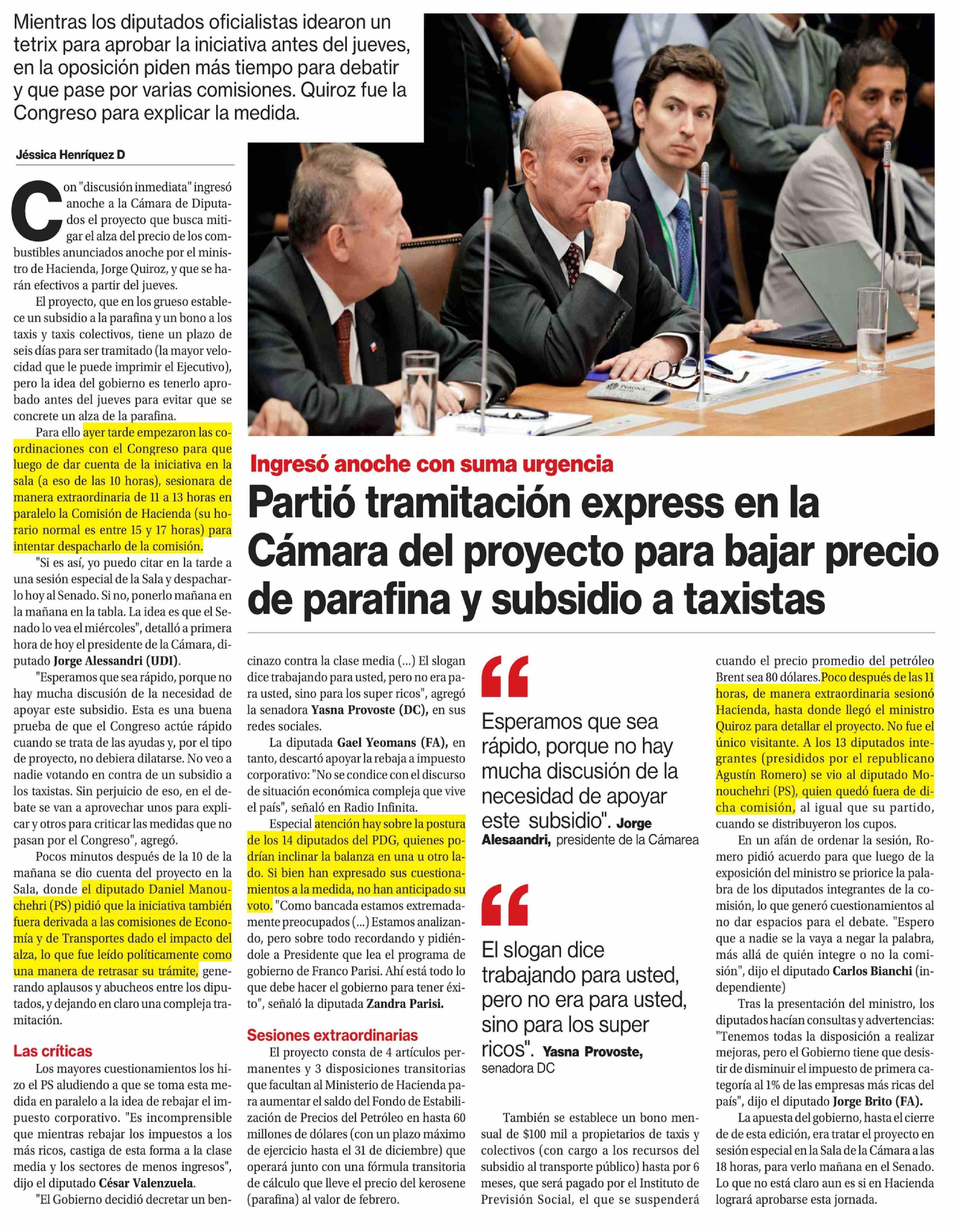 Título: Partió tramitación express en la Cámara del proyecto para bajar precio de parafina y subsidio a taxistas