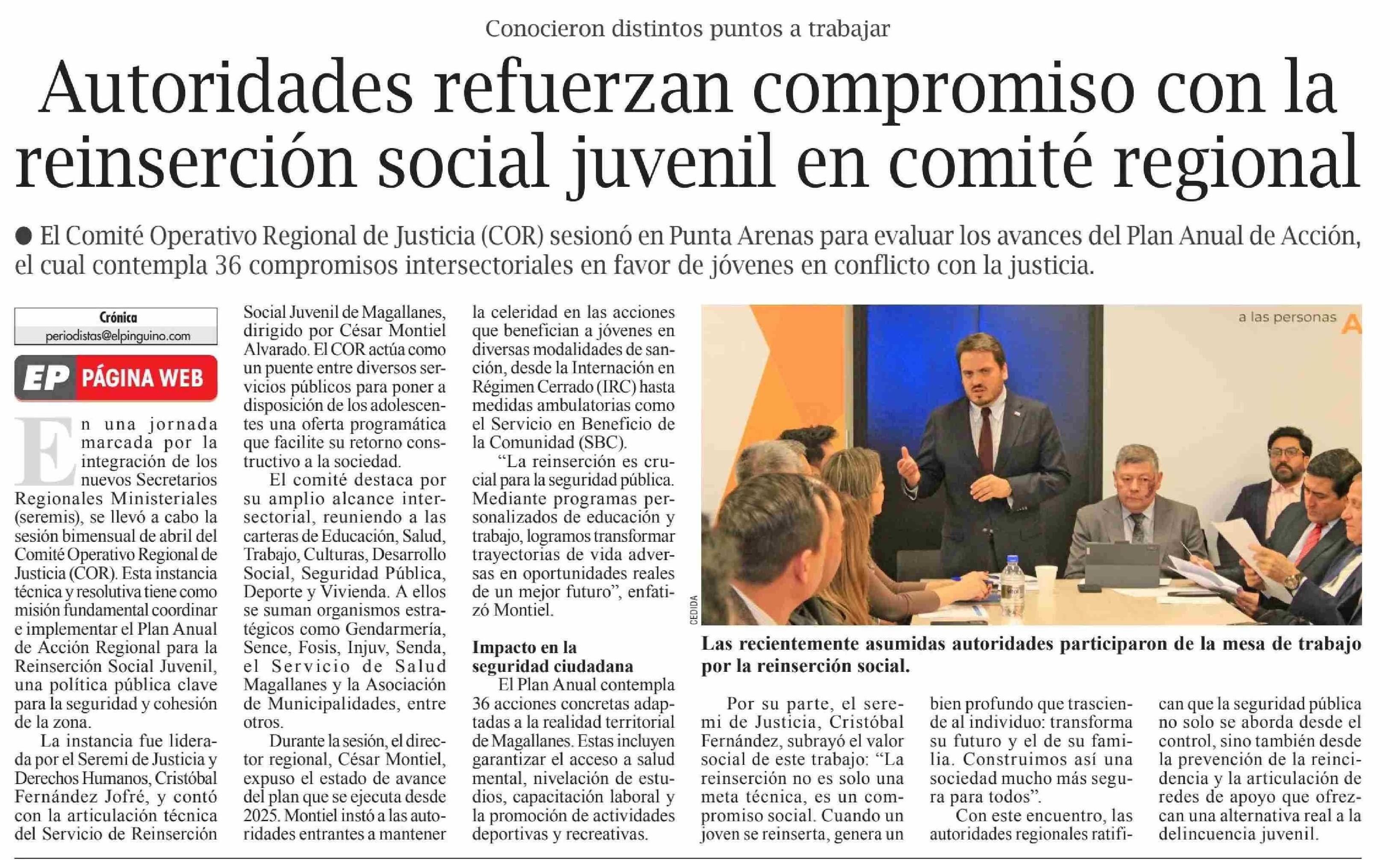 Título: Autoridades refuerzan compromiso con la reinserción social juvenil en comité regional
