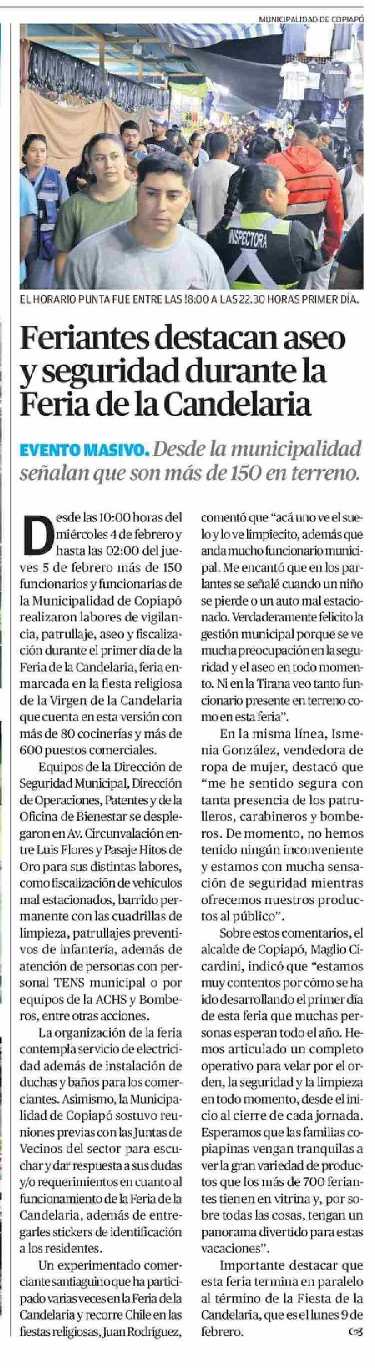 Feriantes destacan aseo y seguridad durante la Feria de la Candelaria 06-02-2026 El Diario de Atacama |