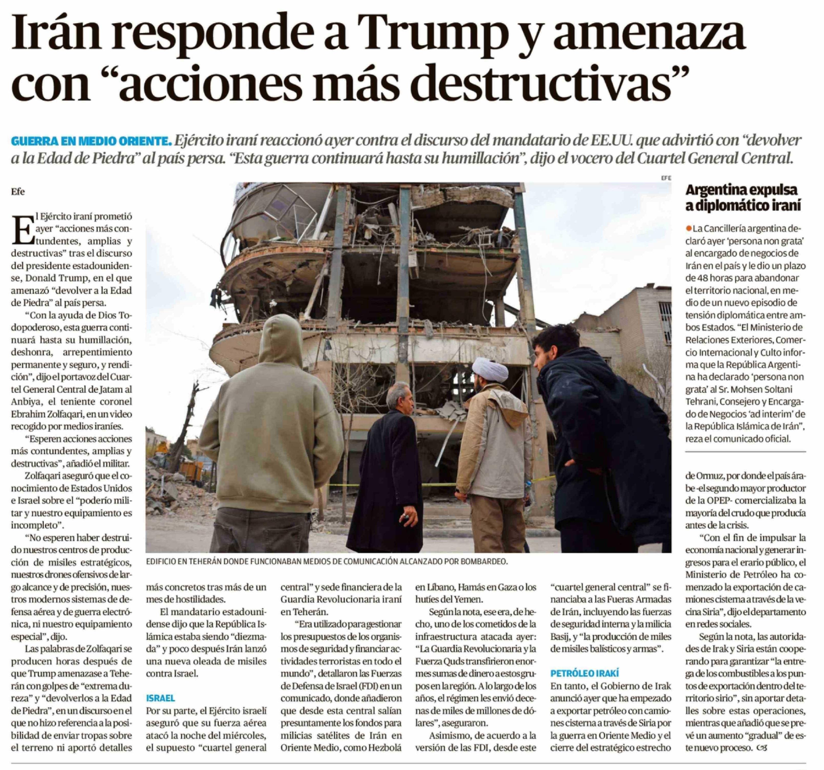 | Título: | Irán responde a Trump y amenaza con "acciones más destructivas" |