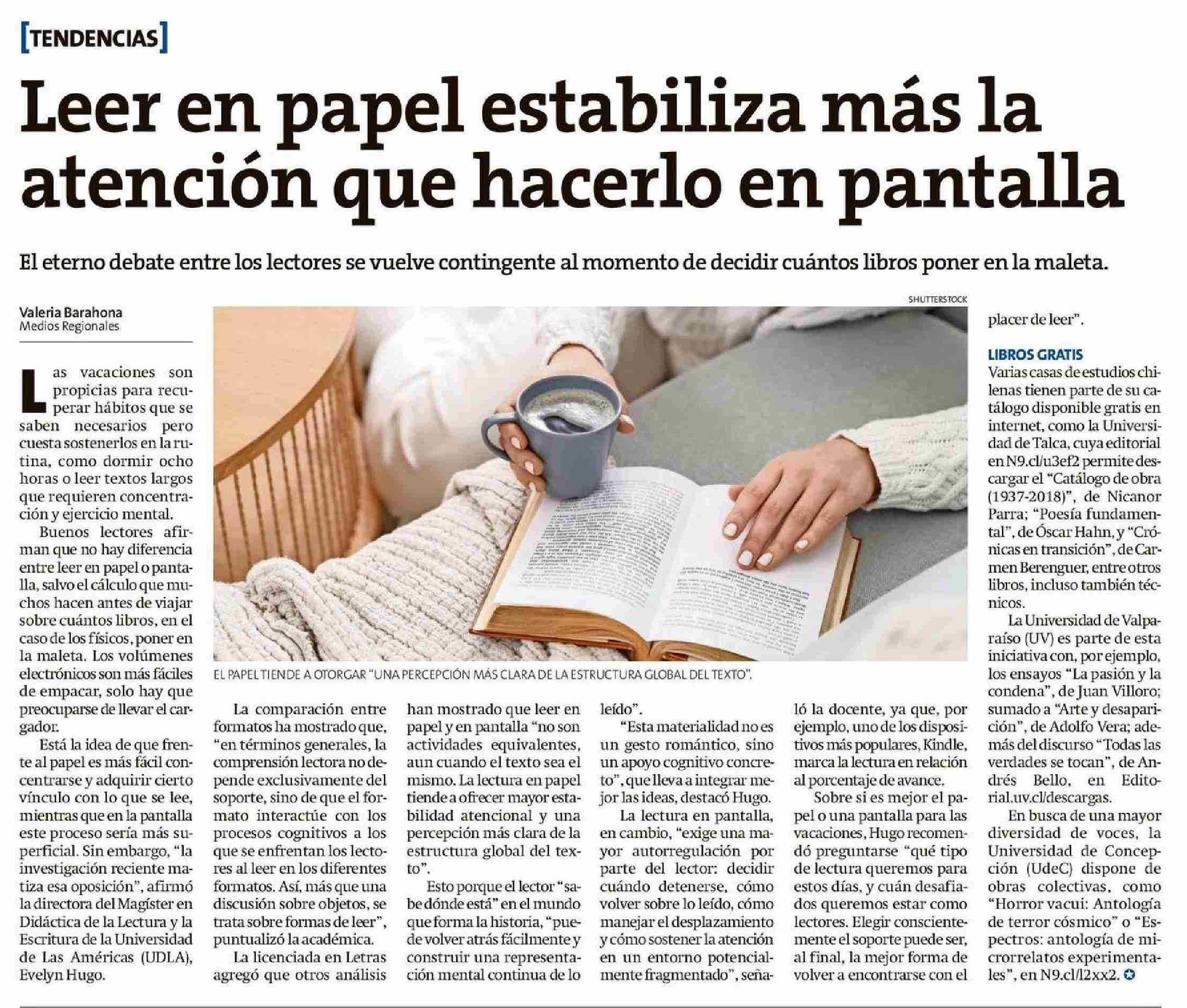 Leer en papel estabiliza más la atención que hacerlo en pantalla 27-01-2026 La Estrella de Chiloé |