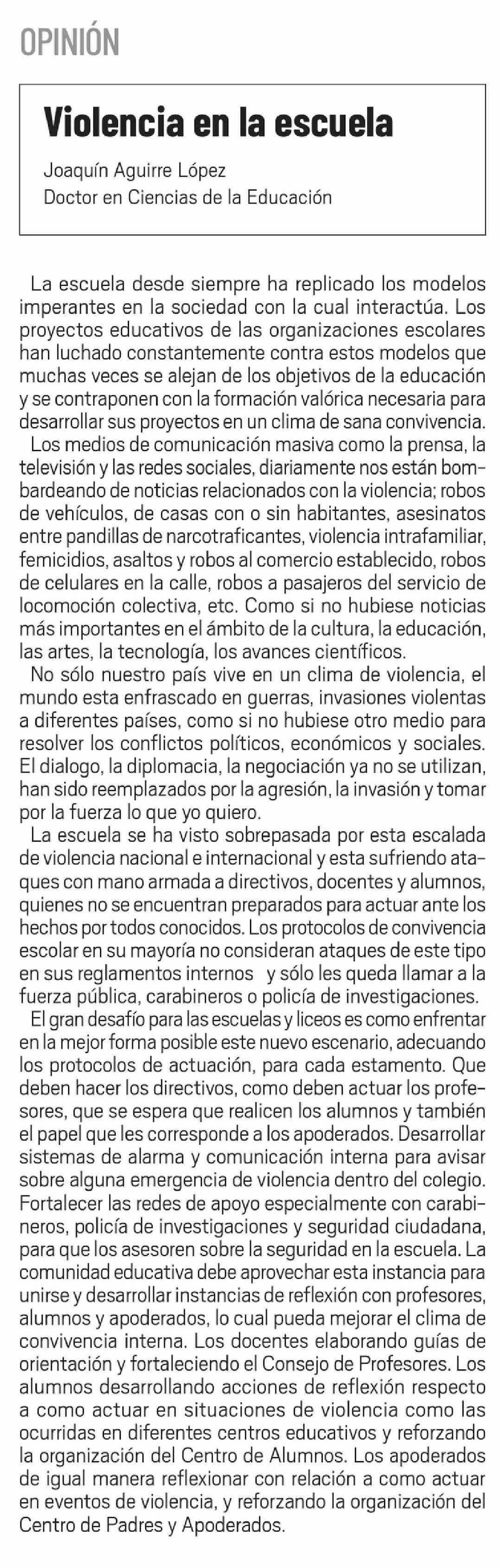 | Título: | Columnas de Opinión: Violencia en la escuela |