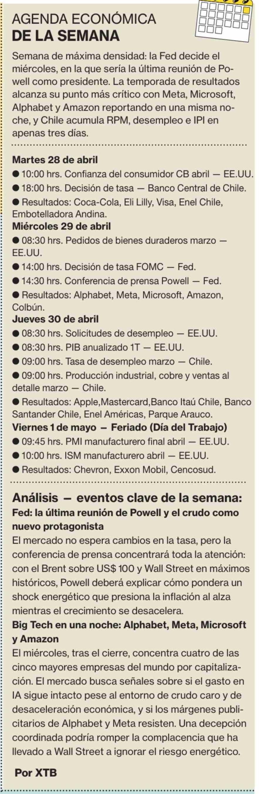 AGENDA ECONÓMICA DE LA SEMANA 27-04-2026 La Segunda |
