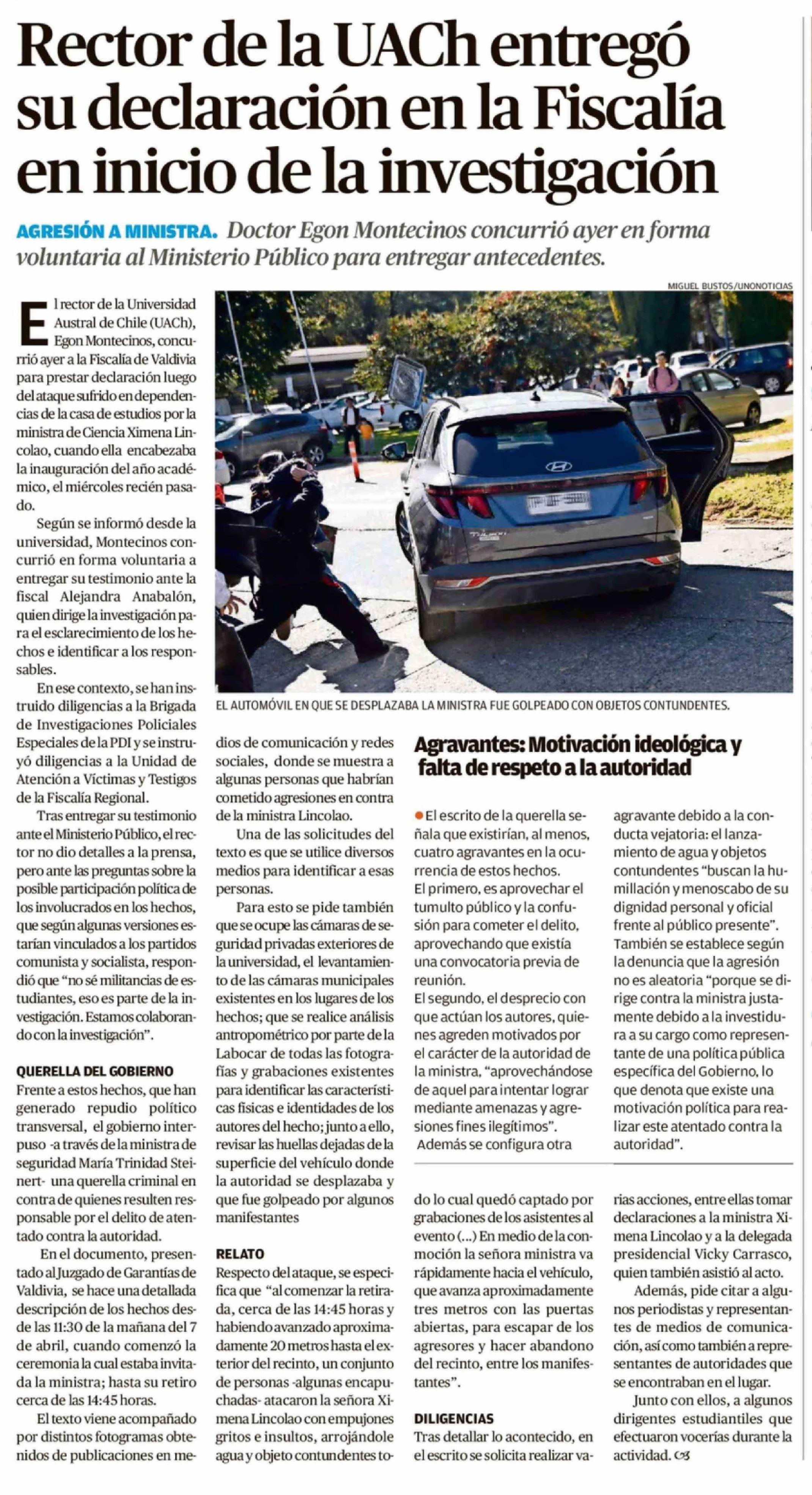Rector de la UACh entregó su declaración en la Fiscalía en inicio de la investigación 11-04-2026 Diario Austral Región de Los Ríos |