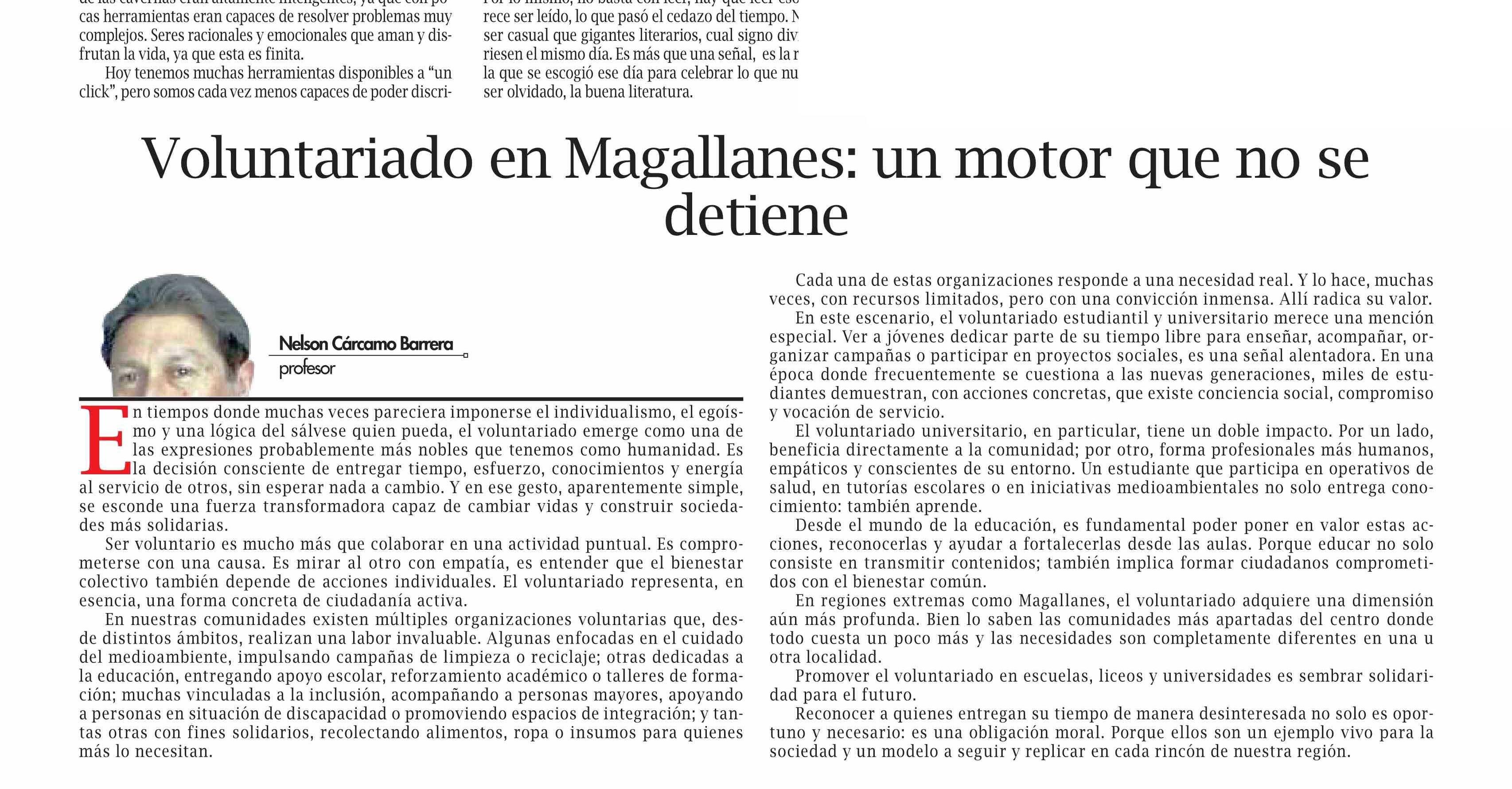 Título: COLUMNAS DE OPINIÓN: Voluntariado en Magallanes: un motor que no se detiene
