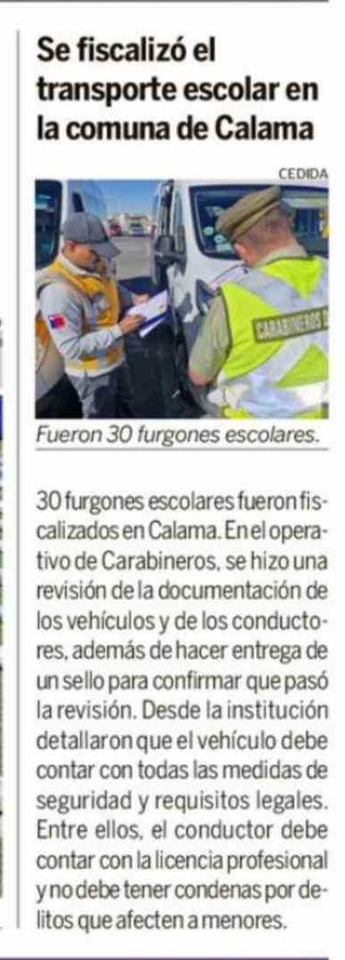 Título: Se fiscalizó el transporte escolar en la comuna de Calama