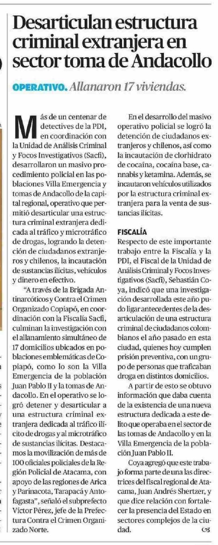| Título: | Desarticulan estructura criminal extranjera en sector toma de Andacollo |