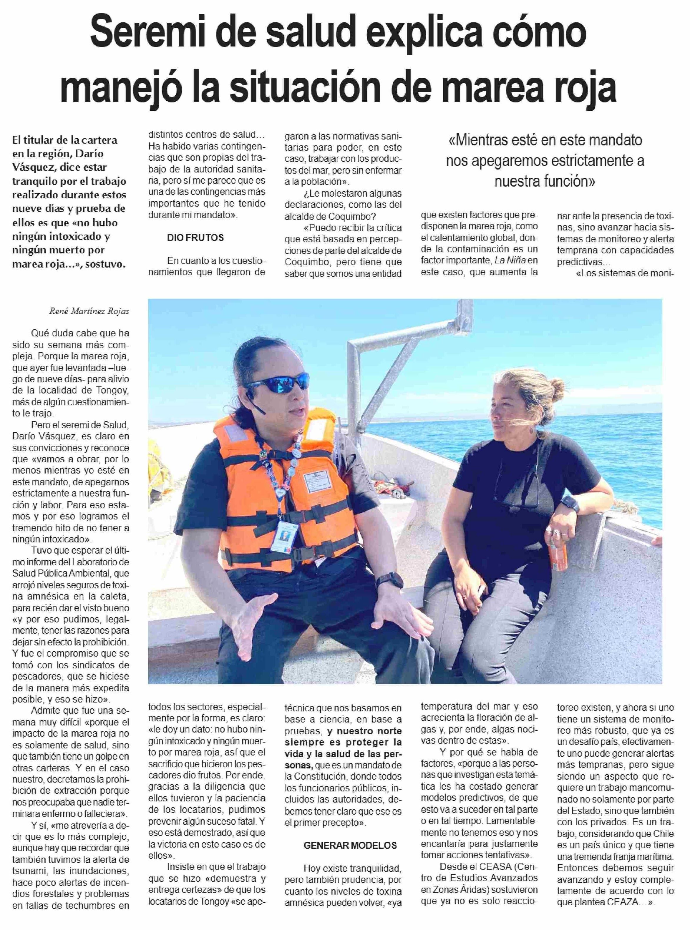 Seremi de salud explica cómo manejó la situación de marea roja 18-01-2026 Diario la Región |