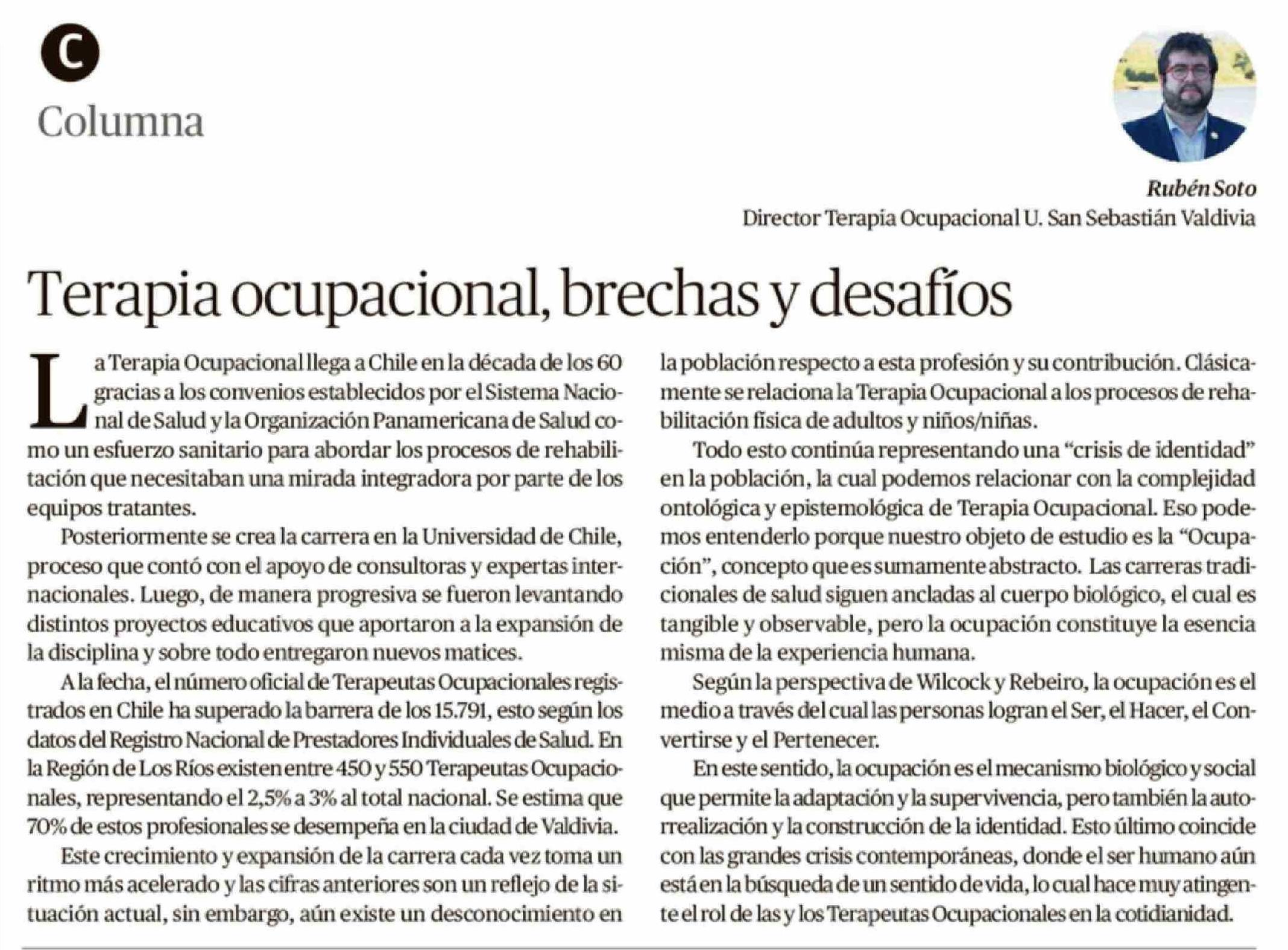 Columnas de Opinión: Terapia ocupacional, brechas y desafíos 10-04-2026 Diario Austral Región de Los Ríos |